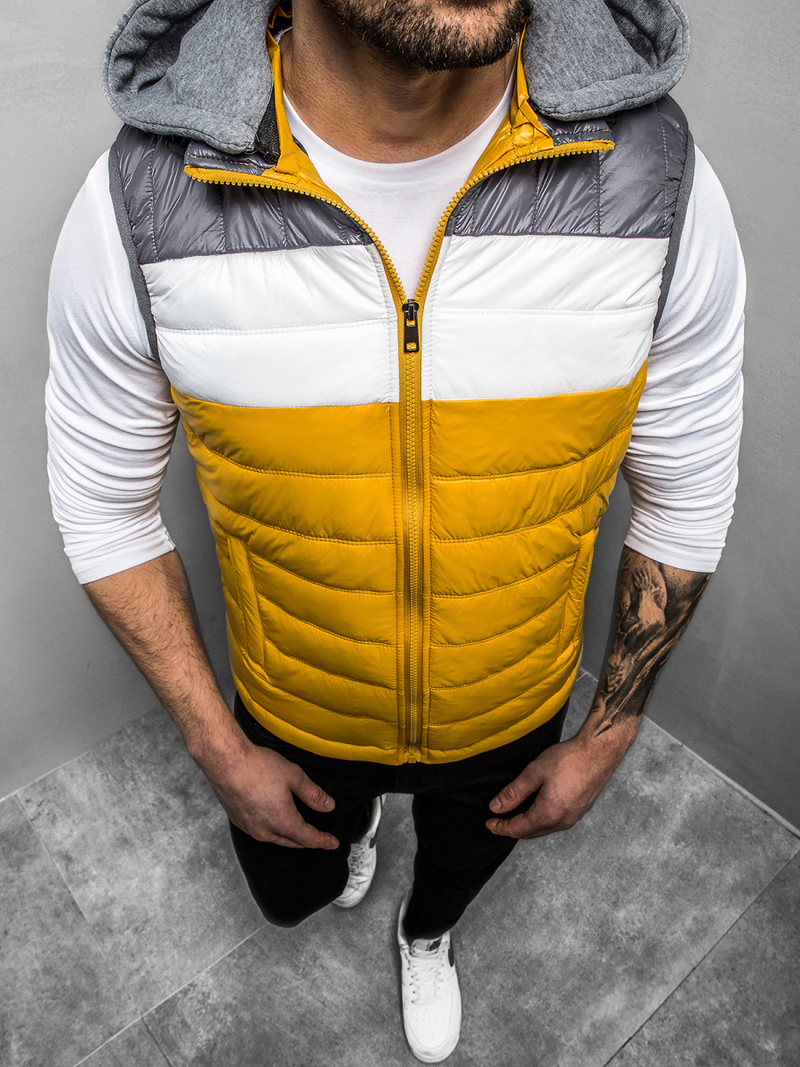- Vesta má: Prošívání, Kontrastní barvy, Odnímatelnou kapuci, Dvě boční kapsy na zip, Jednu kapsa uvnitř