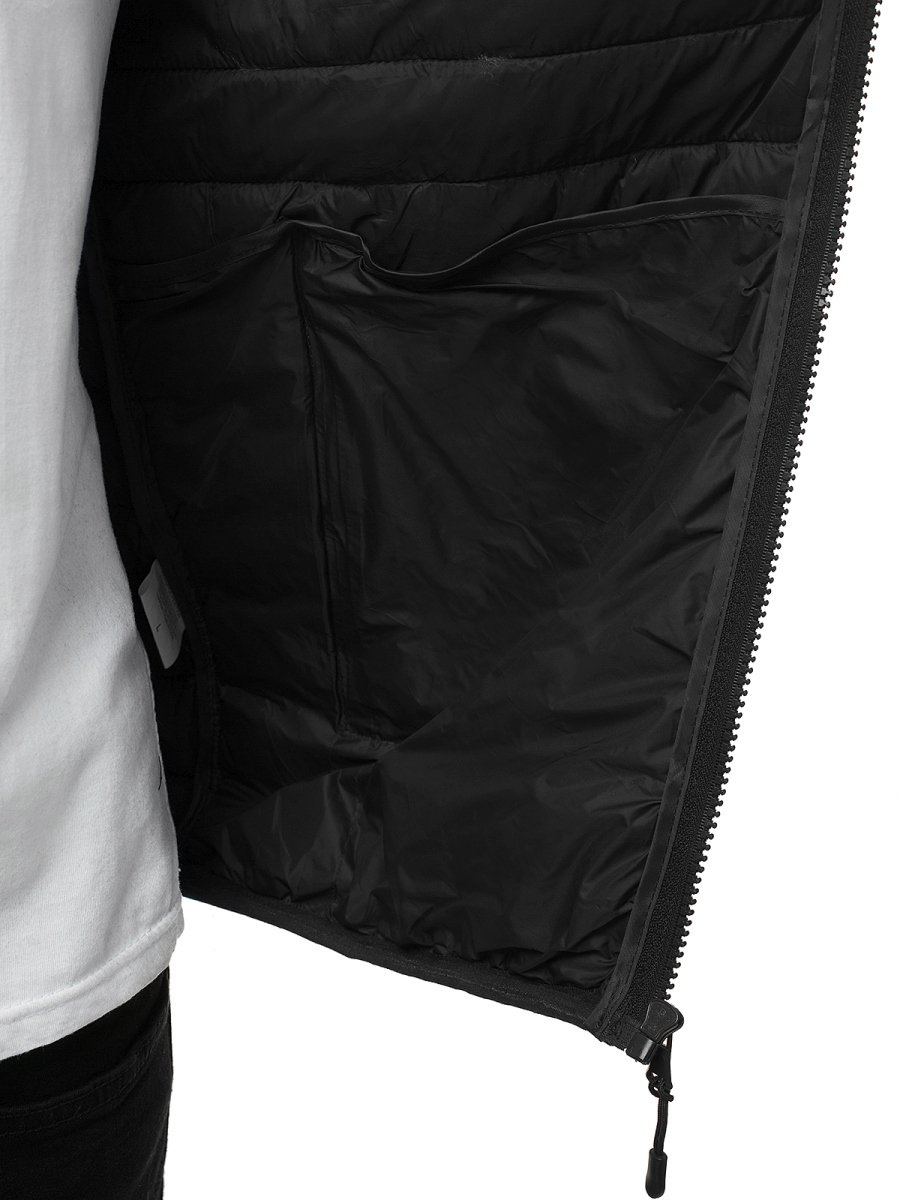 Bunda je potažena efektním prošíváním. Má praktickou kapuci, která bude ideální pro chladné a větrné dny. Bunda má dvě kapsy po stranách a jednu uvnitř, kde můžete skrýt telefon, klíče nebo peněženku. Její spodni část a rukávy byly zakončeny manžetami, které mu dodávají sportovní charakter. Bunda je vyrobena z vysoce kvalitního polyesteru, což je rychle schnoucí materiál.