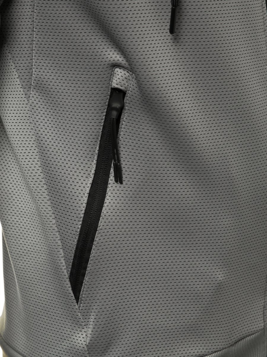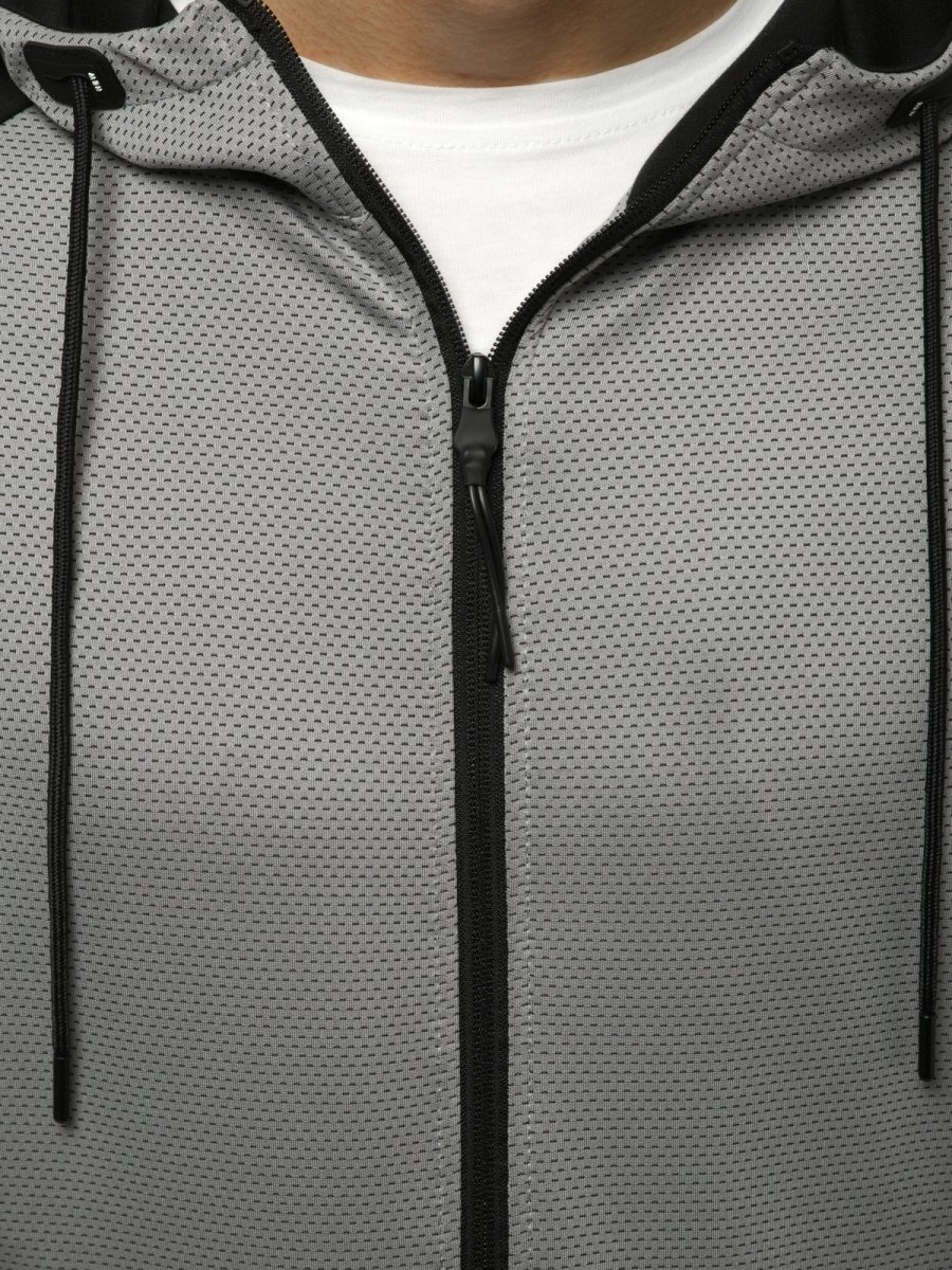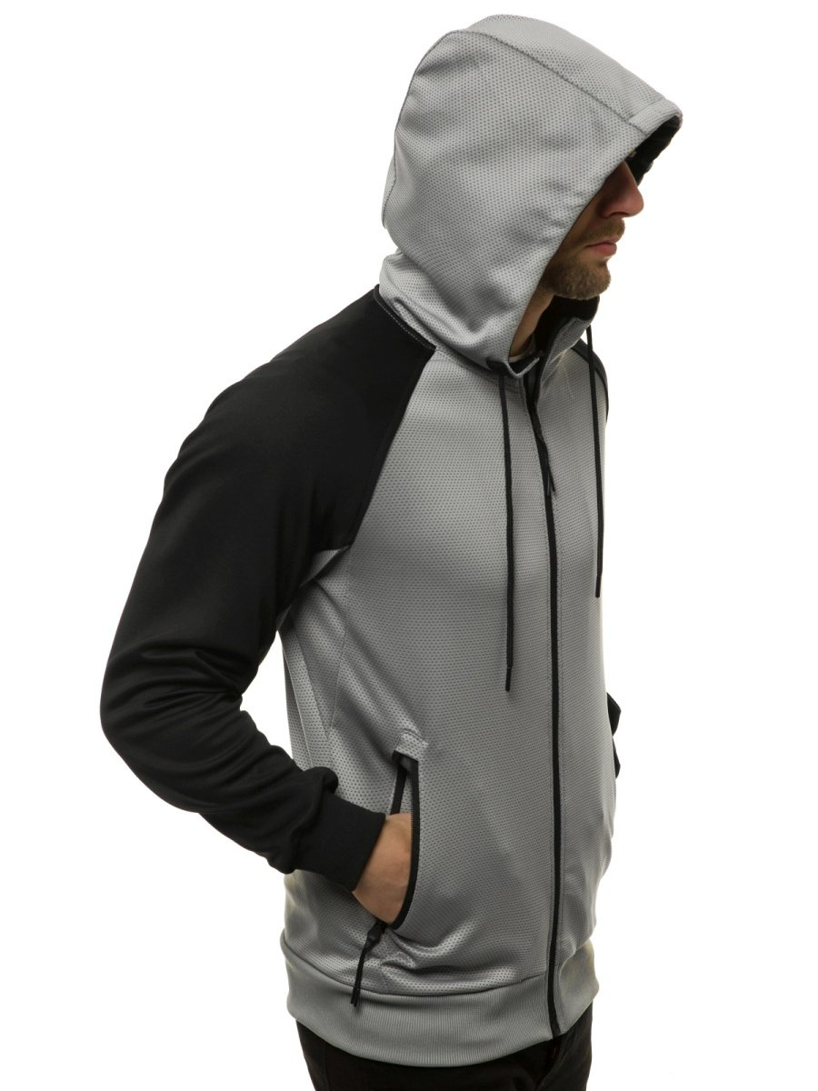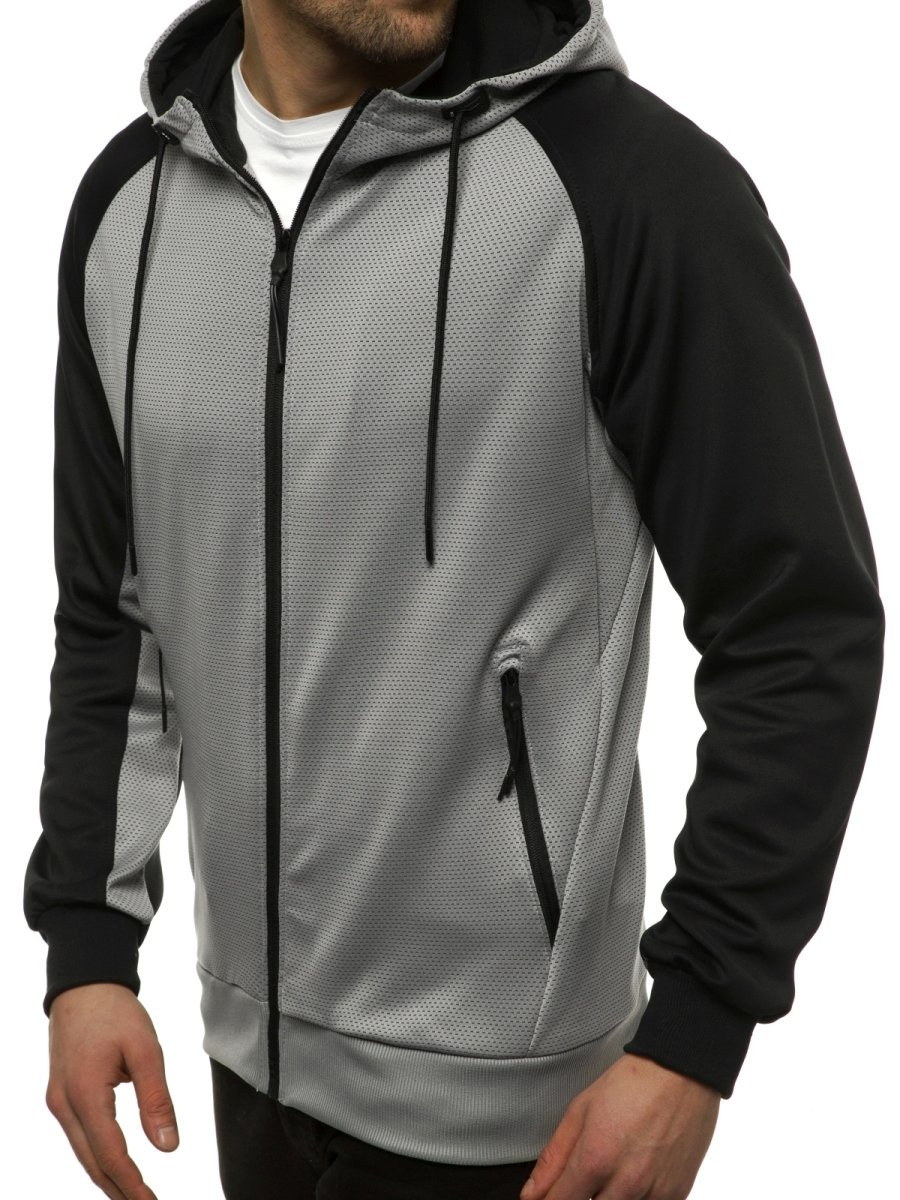 Mikina je zapínána na zip. Má praktickou kapuci, která se skvěle hodí za chladných, větrných a deštivých dnů. Mikina má po stranách kapsy, kde můžete uložit klíče nebo telefon. Její spodní část a rukávy byly zakončeny manžetami, které účinně chrání před vlivem chladných větrných nárazů a zároveň zaručují vysoký komfort nošení. Kontrastní rukávy dodávají mikině originální charakter. Tento model byl vyroben z kombinace bavlny a polyesteru. Díky tomu je pohodlná, příjemná na dotek, pěkně sedí na těle, nemačká se ani protahuje se.