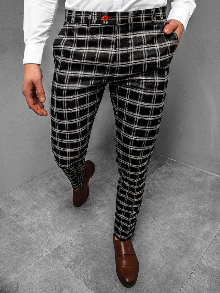 Kalhoty jsou zdobeny nadčasovým, kostkovaným vzorem. Mají praktické kapsy vpžedu a vzadu, kde můžete skrýt telefon nebo peněženku. Chino jsou vyrobena z kombinace polyesteru a viskózy, díky čemuž se na těle vypadají velmi pěkně, nemačkají se a neprotahují se.
