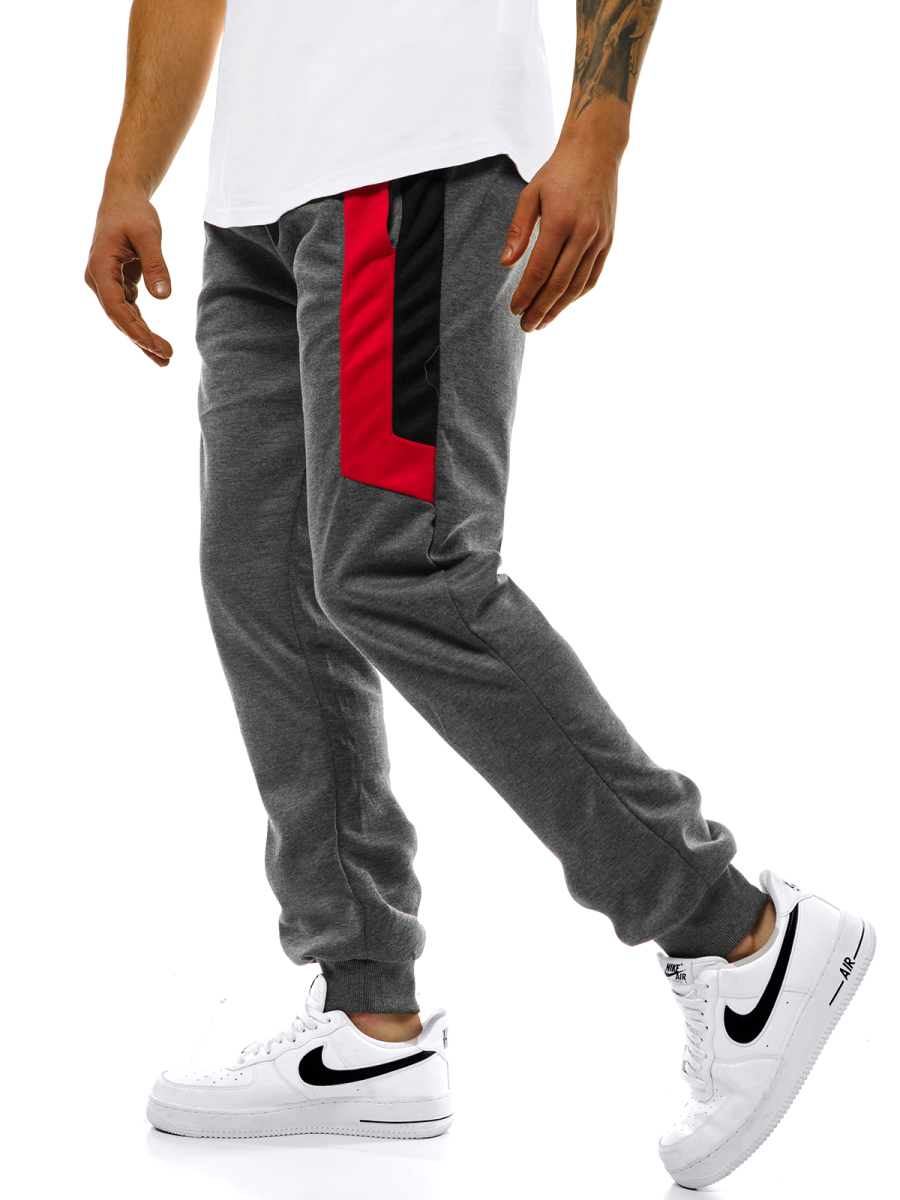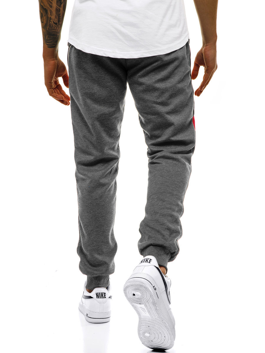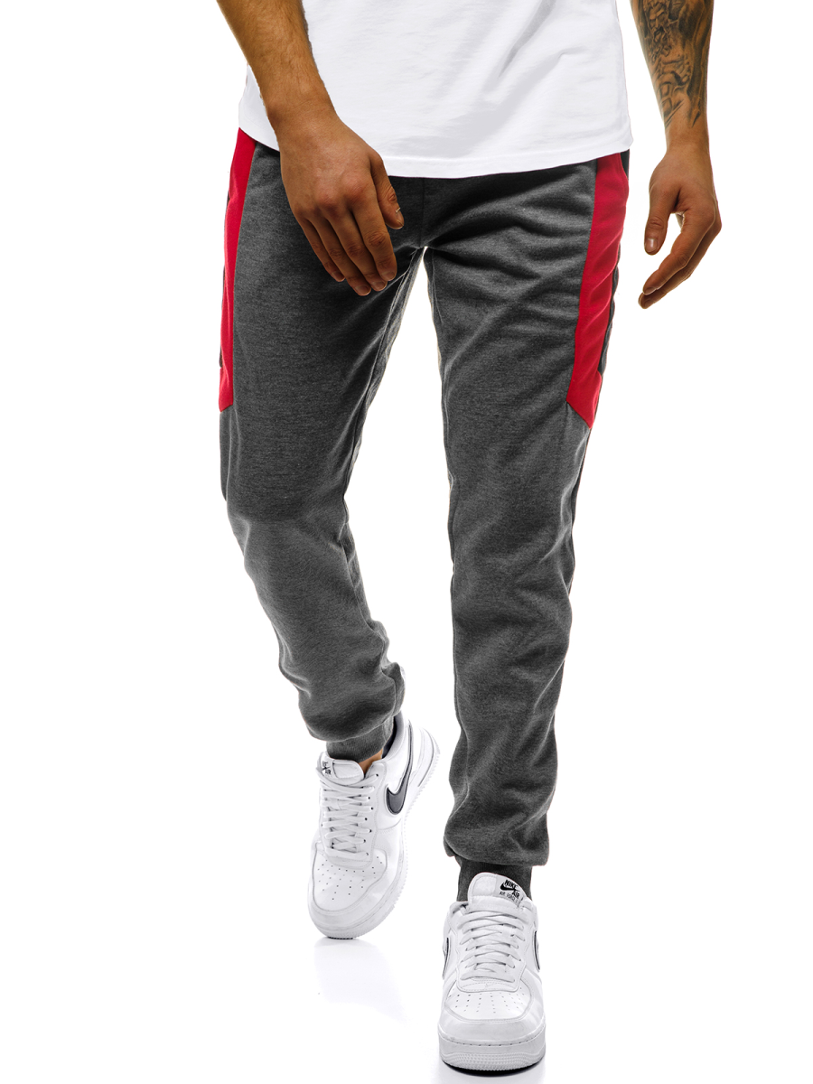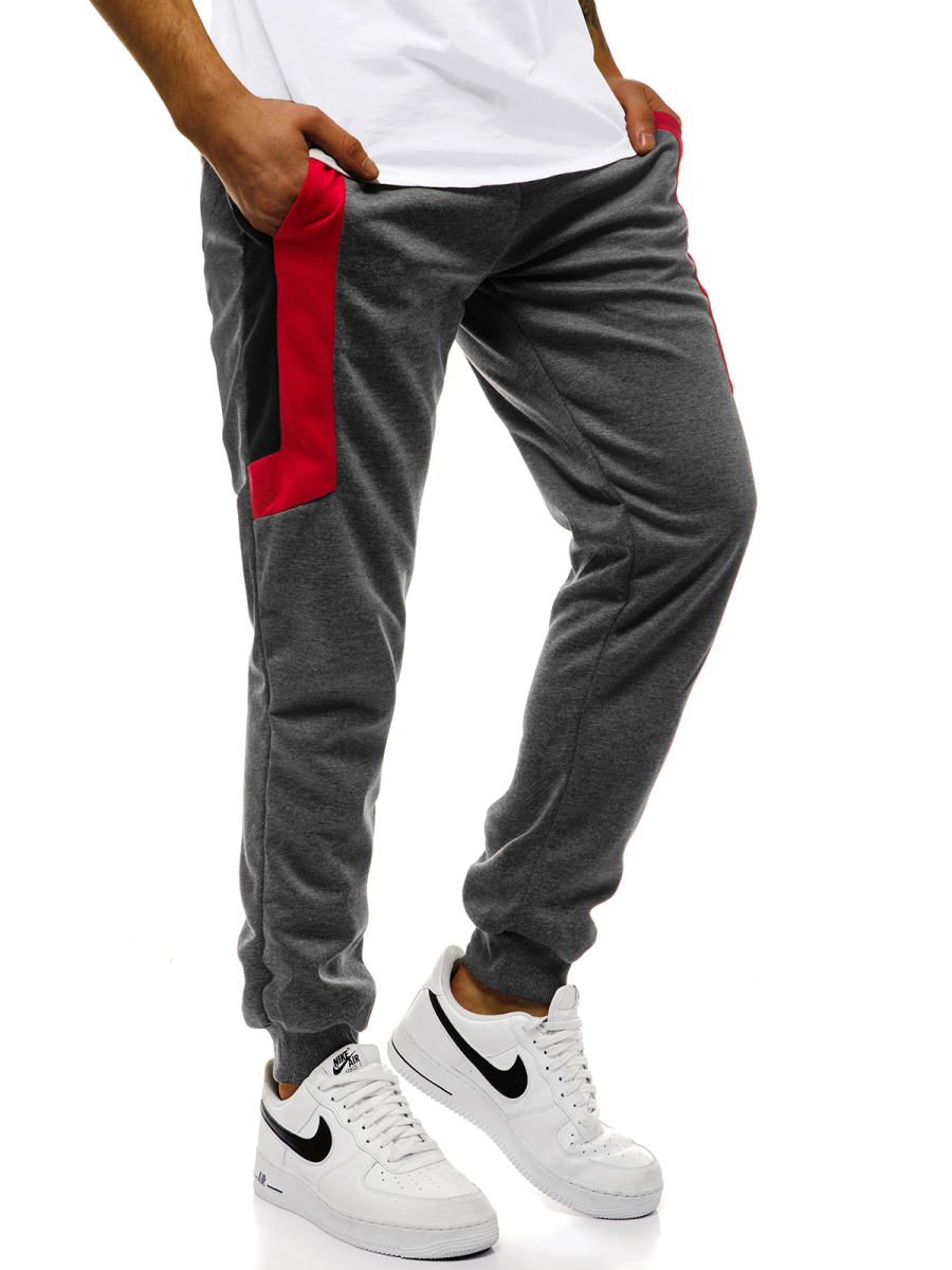 Kalhoty mají volný střih a jejich pas a nohavice jsou zakončeny žebrovanymi lemy. Tento typ střihu se jménuje jogger. Kalhoty mají po stranách praktické kapsy, kde můžete skrýt peněženku nebo klíče. Kontrastní vložky na boku jim dodávají originální charakter. Joggery jsou vyrobeny z kombinace bavlny a polyesteru. Díky tomu jsou příjemné na dotek, vzdušné, pohodlné na nošení a pěkně se oblékají na tělo.