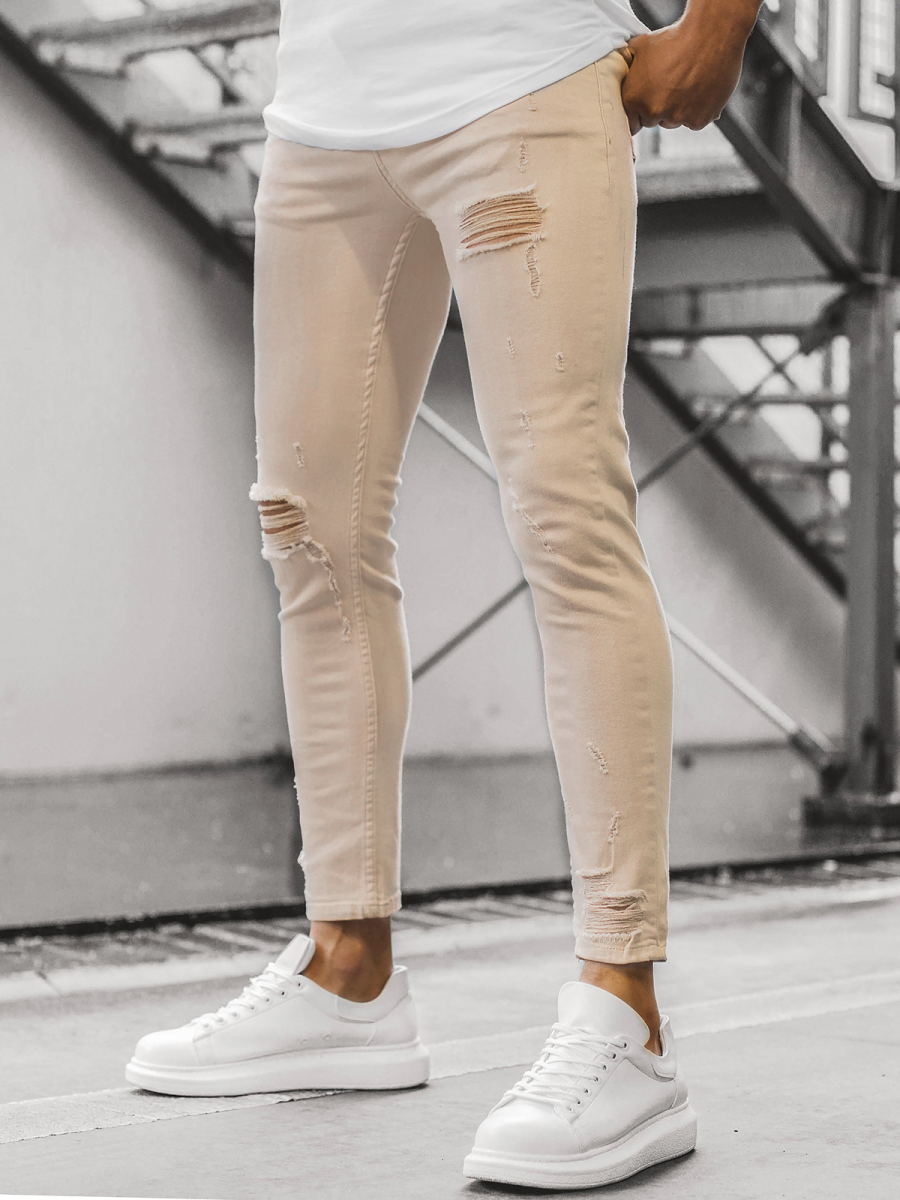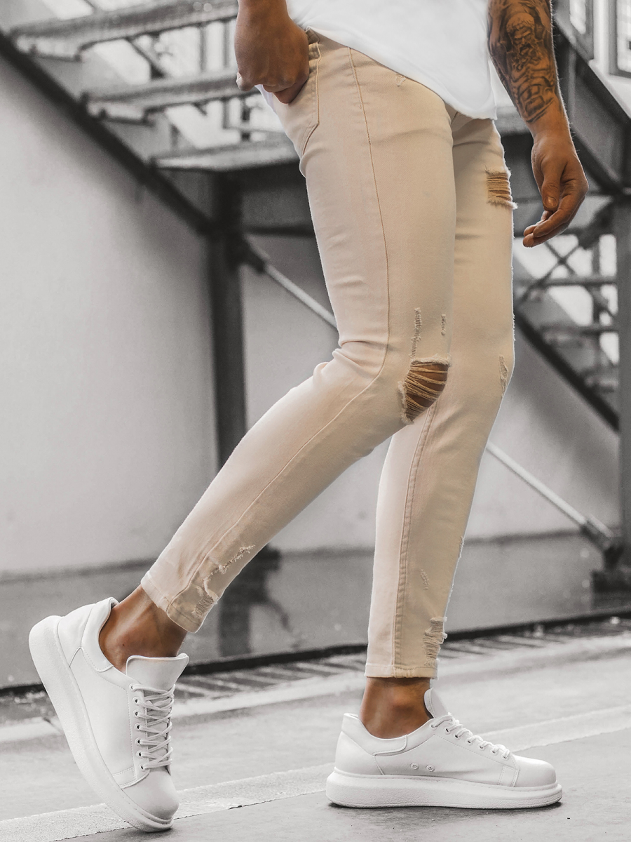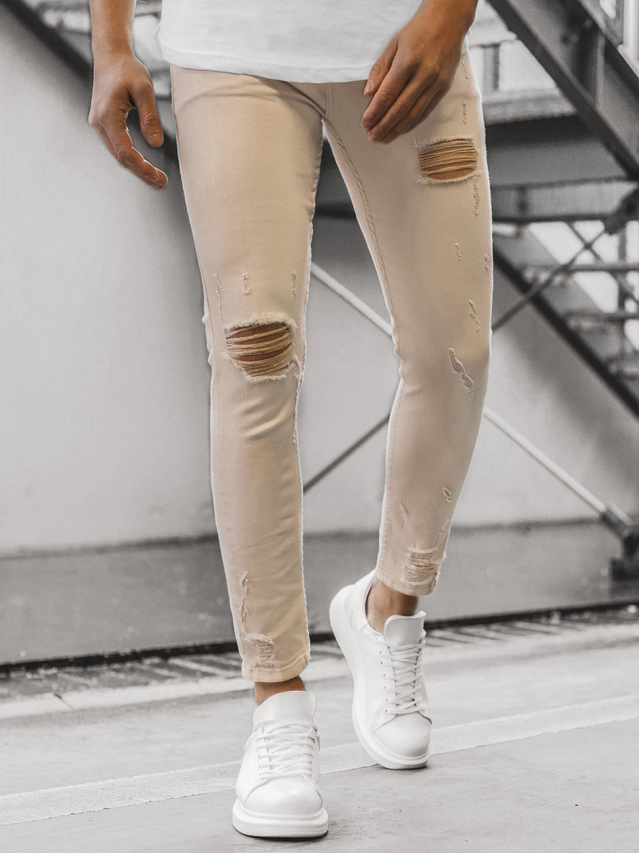 Kalhoty mají oděrky na nohavicícj, takže vypadají velmi působivě. Vpředu a vzadu jsou kapsy, kde můžete uložit klíče, peněženku nebo telefon. Džíny byly vyrobeny z vysoce kvalitní bavlny s elastanem. Díky tomu jsou pěkně přizpůsobi tělu, jsou pohodlné na nošení, příjemné na dotek, neprotahují se časem a nemačkají..