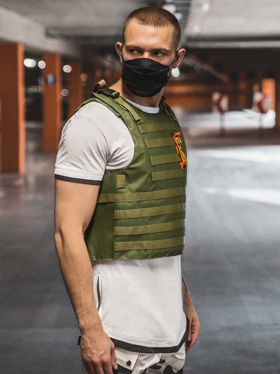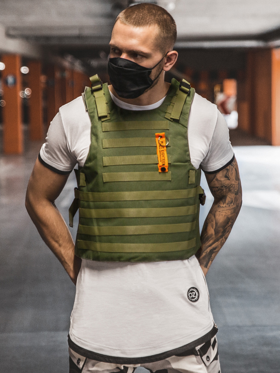 Vestu osloví všechny milovníky vojenského stylu. Velmi dobře bude vypadát s vojenským oblečením, které najdete v našem internetovém obchodě. Vestu lze kombinovat například s dlouhým rukávem v zelených barvách, kalhotami typu cargo s postranními kapsami a botami typu worker.