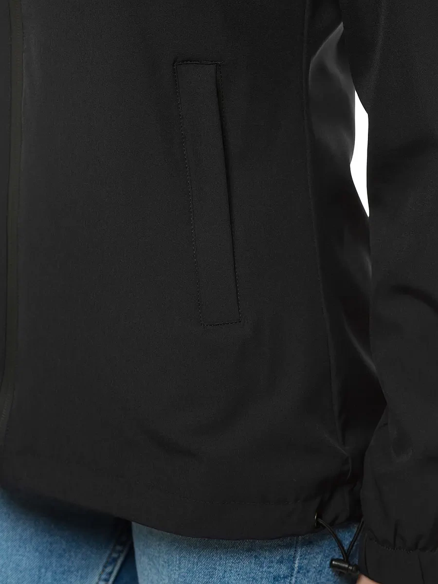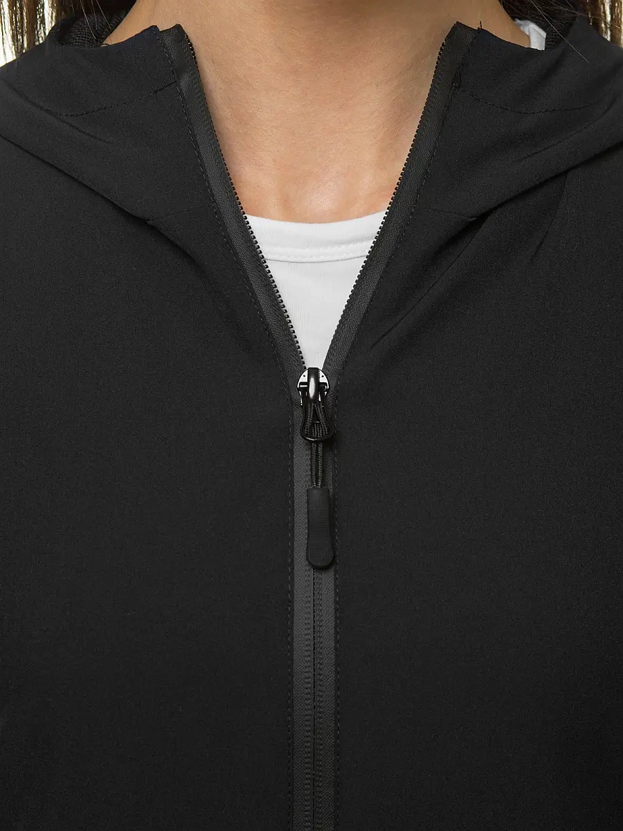 Bunda pochází z nejnovější kolekce. Má praktickou kapuci, která bude ideální pro chladné, větrné a deštivé dny. Na bocích bundy jsou kapsy, kam můžete schovat potřebné drobnosti, jako je telefon nebo peněženka. Její rukávy jsou zakončeny stahováním, které chrání před studenými poryvy větru. Bunda je vyrobena z vysoce kvalitního polyesteru s příměsí elastanu a podšívka je z polyesteru. Díky tomu krásně se přízpůsobi postavě a rychle schne.