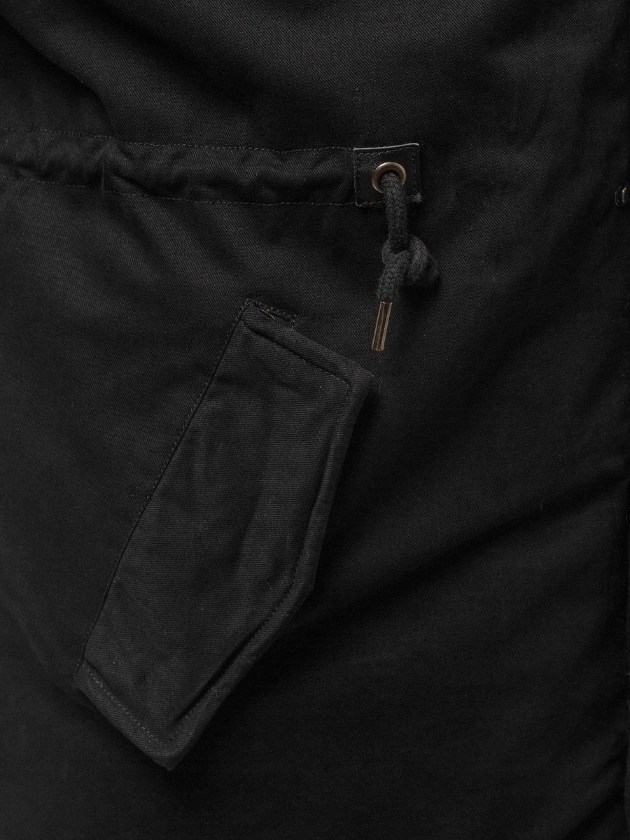 Bunda má střih typu parka. Sahá přes boky a má velké kapsy - dvě po stranách a jednu uprostřed, kam můžete schovat potřebné drobnosti, jako jsou klíče, telefon nebo peněženka. Parka má kapuci, která bude ideální pro chladné, větrné a deštivé dny. Odnímatelná umělá kožešina na kapuci v ve předu u zipu dodává jí původní vzhled. Bunda je vyrobena výhradně z bavlny, díky níž se pohodlně nosí, je vzdušná a příjemná na dotek.