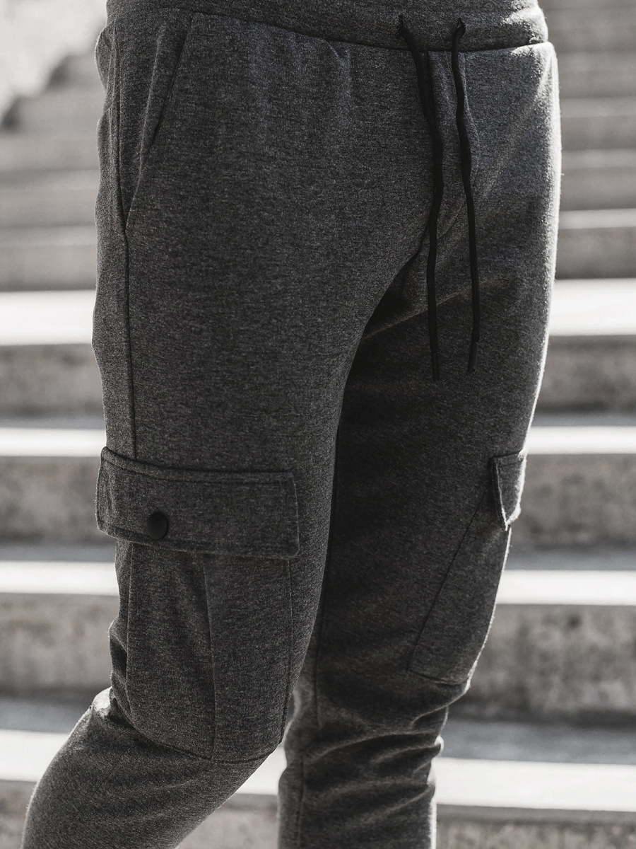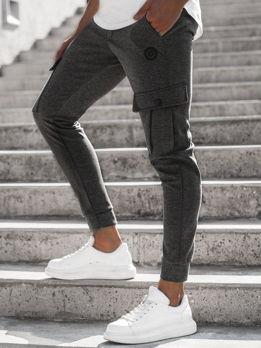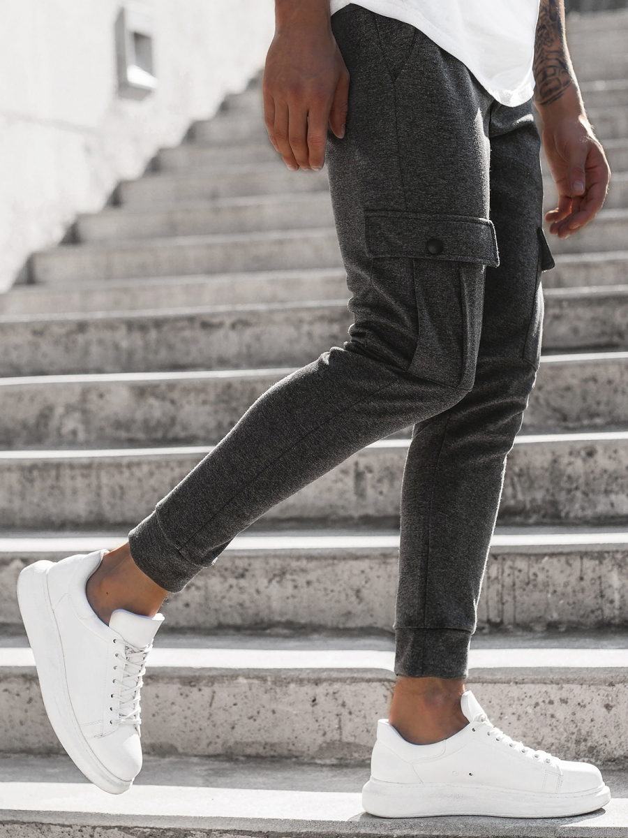 Kalhoty jsou vyrobeny z kombinace polyesteru a bavlny. Díky tomu jsou pohodlné na nošení, příjemné na dotek, neprotahují se, nemačkají se a pěkně se přizpůsobi postavě. Jejich pas a nohavice jsou zakončeny stahováním, které dodávají celku sportovní charakter. Po stranách a vpředu jsou praktické kapsy, kde můžete skrýt peněženku nebo klíče.
