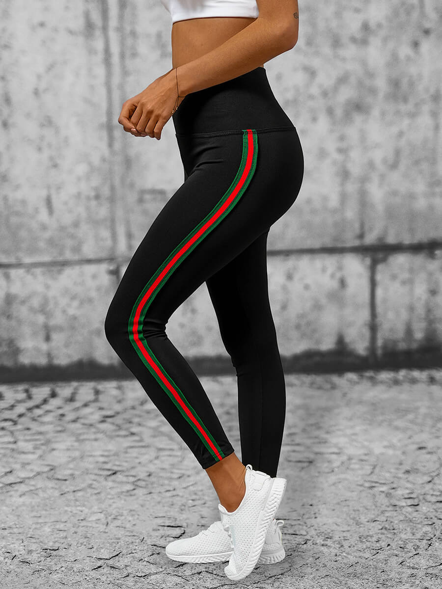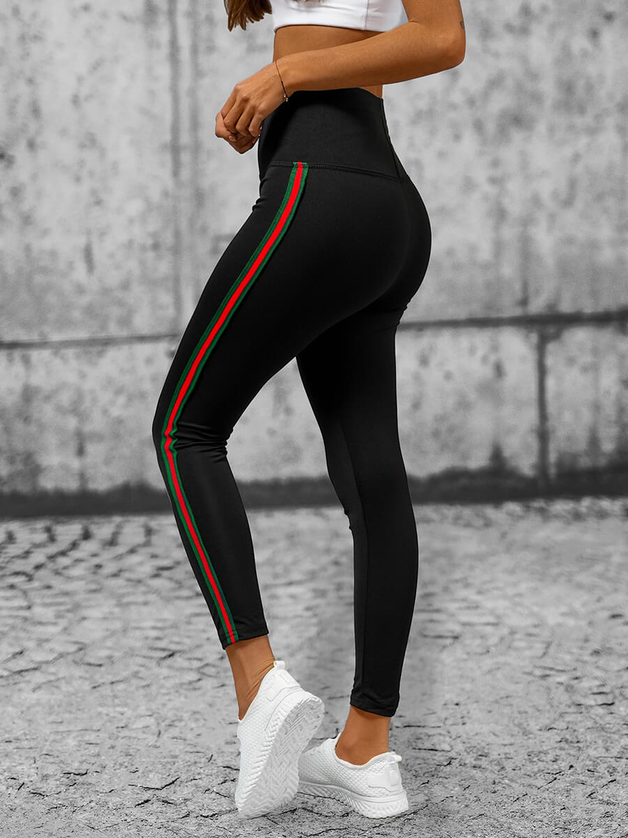 Legíny mají pas se stahováním, které zaručuje vysoký komfort nošení a účinně chrání před sklouznutím a zkroucením. Vysoký pas skrývá nedostatky postavy, například vyčnívající břicho nebo boky. Pruhy na bocích dodávají legínám originální vzhled. Tento model je vyroben z vysoce kvalitního polyesteru s příměsí spandexu. Díky tomu krásně se přizpůsobi postavě a neomezuje v pohybu.