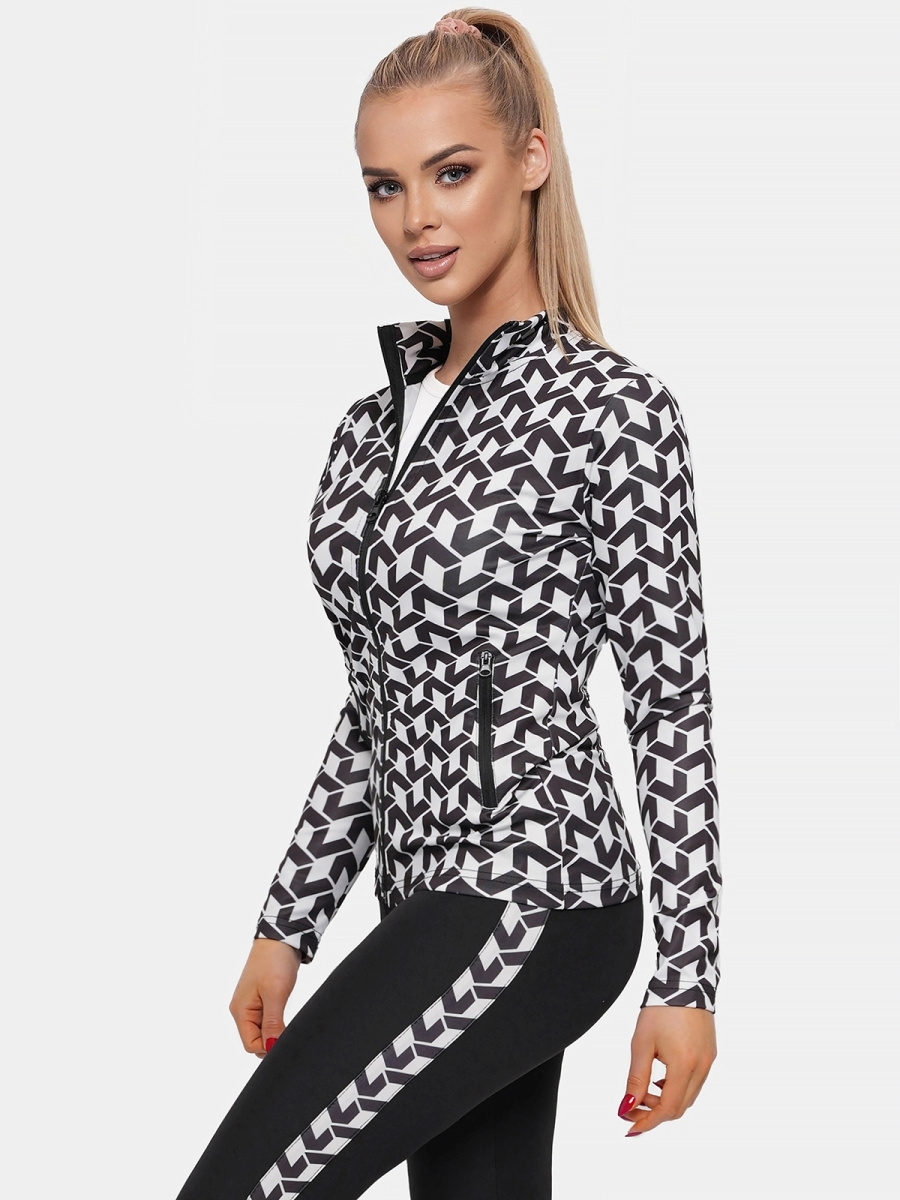 - Mikina na zip s kapsami na bocích v černobílém vzoru