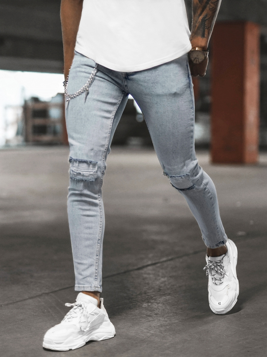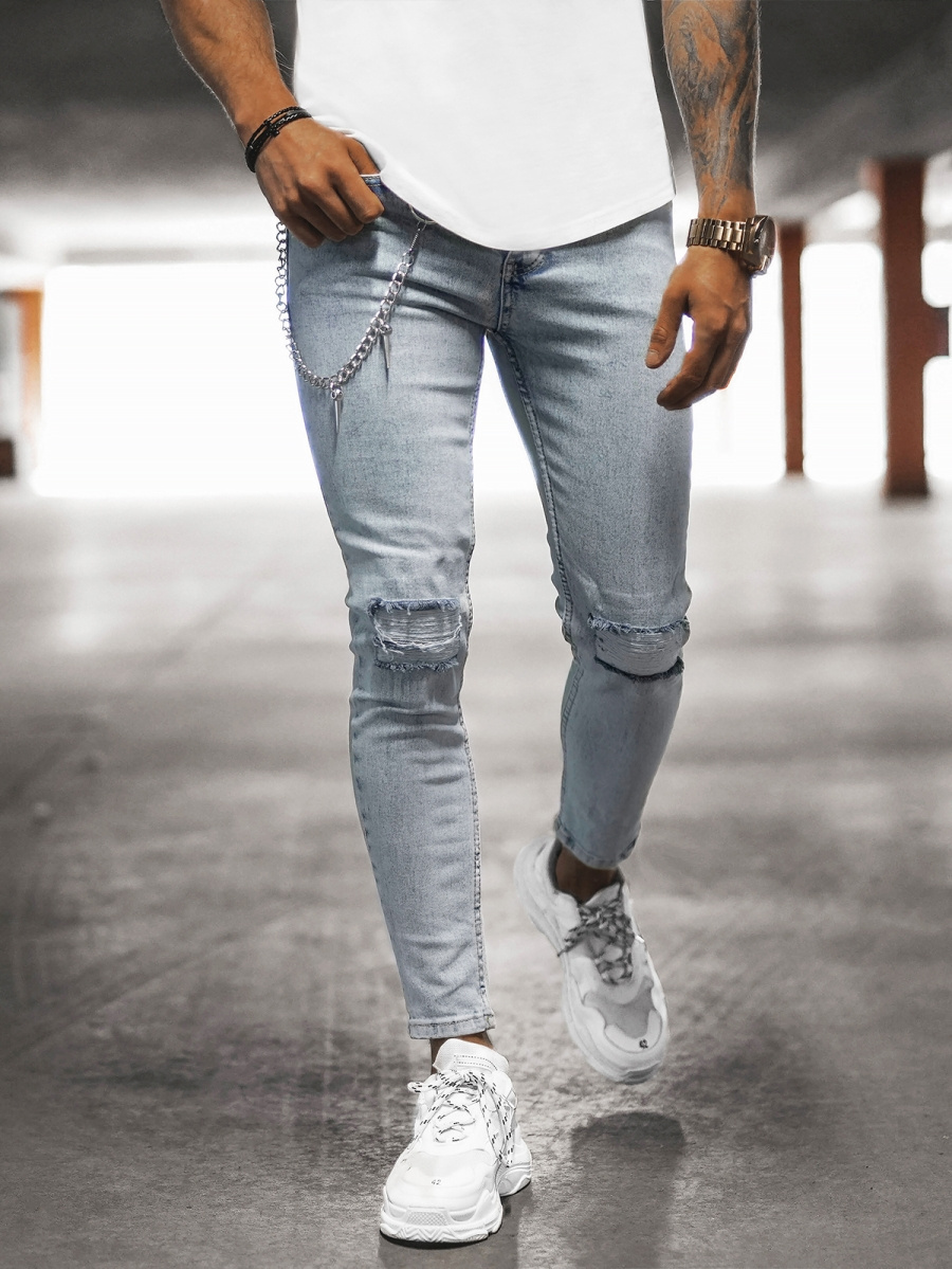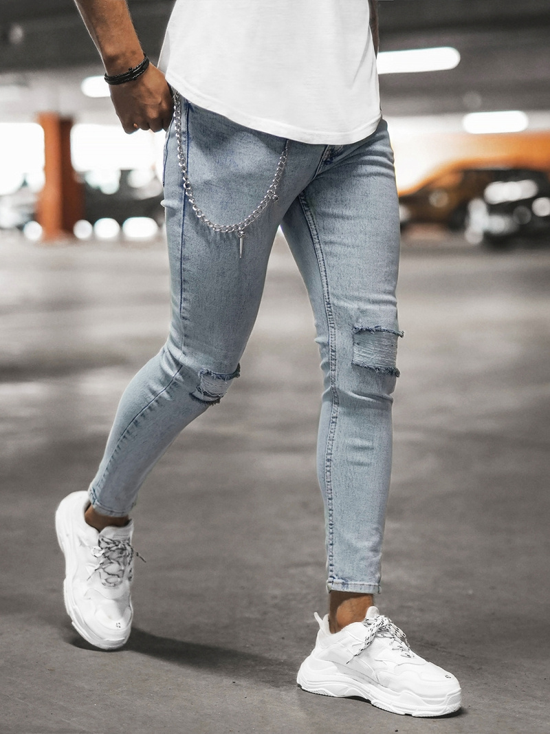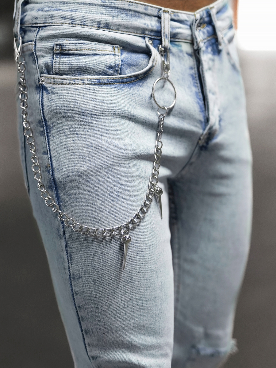 Pánské kalhoty s oděrkami a řetízkem