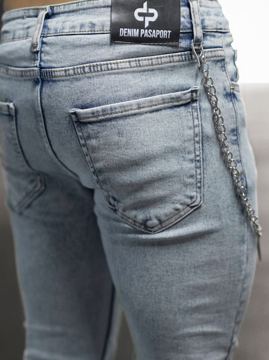 Džíny mají střih trubek, který je charakteristický tím, že nohavice jsou úzké po celé délce . Vpředu a vzadu kalhot jsou kapsy, kam schováte peněženku, telefon nebo klíče. Originální vzhled dodává ozdobný, odepínatelný řetízek a oděrky na nohavicích. Džíny jsou vyrobeny z kvalitní bavlny s příměsí elastanu, díky čemuž se příjemně nosí, jsou příjemné na dotek a pěkně se přizpůsobí postavě.