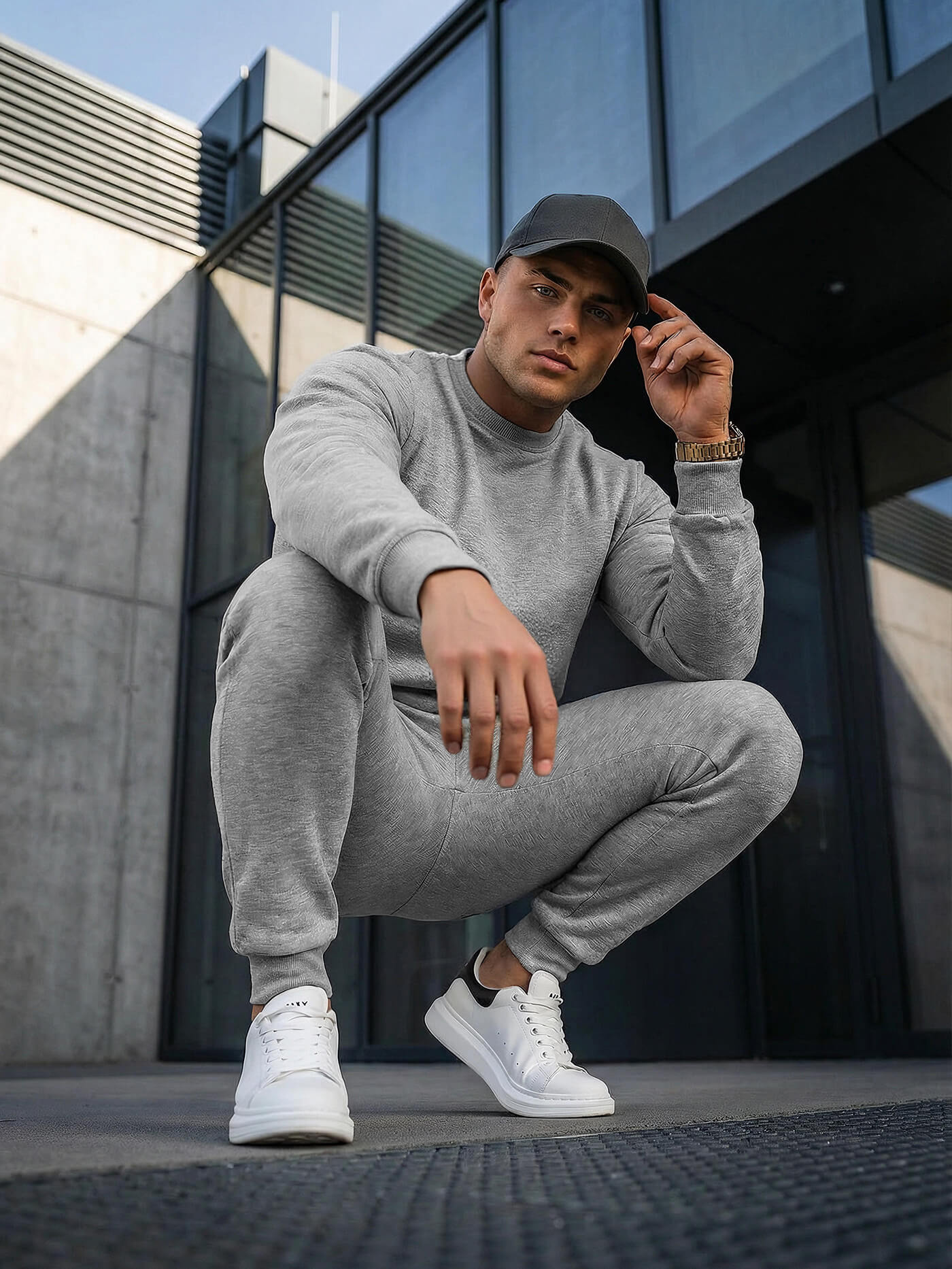 Sadu osloví všechny milovníky volných, casualových stylizací. Má univerzální, klasický střih, který nikdy nevyjde z módy a bude slušet každému muži bez ohledu na věk nebo typ postavy. Takovou sadu lze úspěšně nosit po celý rok - v chladnějších i teplejších dnech.