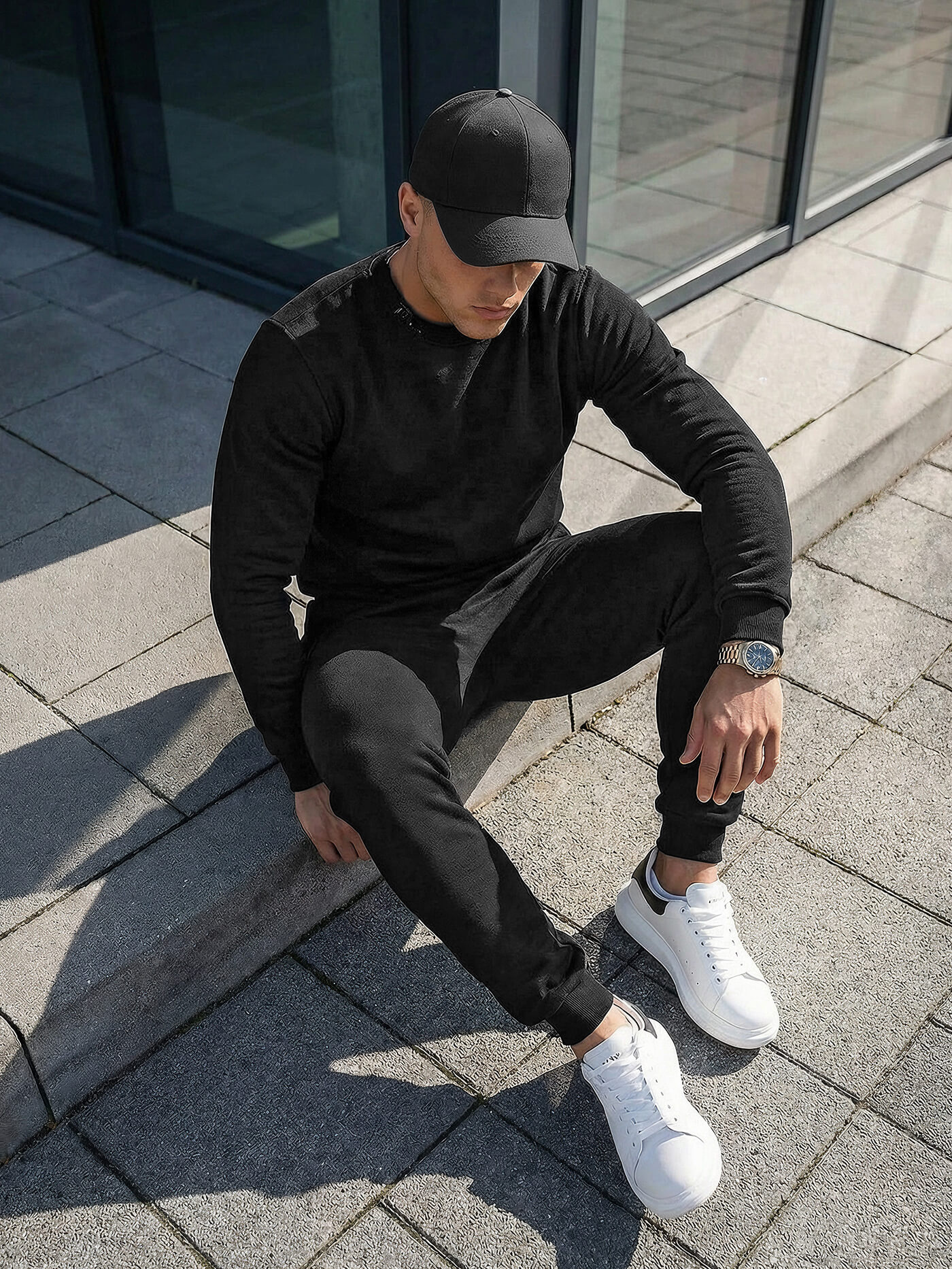 Sadu osloví všechny milovníky volných, casualových stylizací. Má univerzální, klasický střih, který nikdy nevyjde z módy a bude slušet každému muži bez ohledu na věk nebo typ postavy. Takovou sadu lze úspěšně nosit po celý rok - v chladnějších i teplejších dnech.