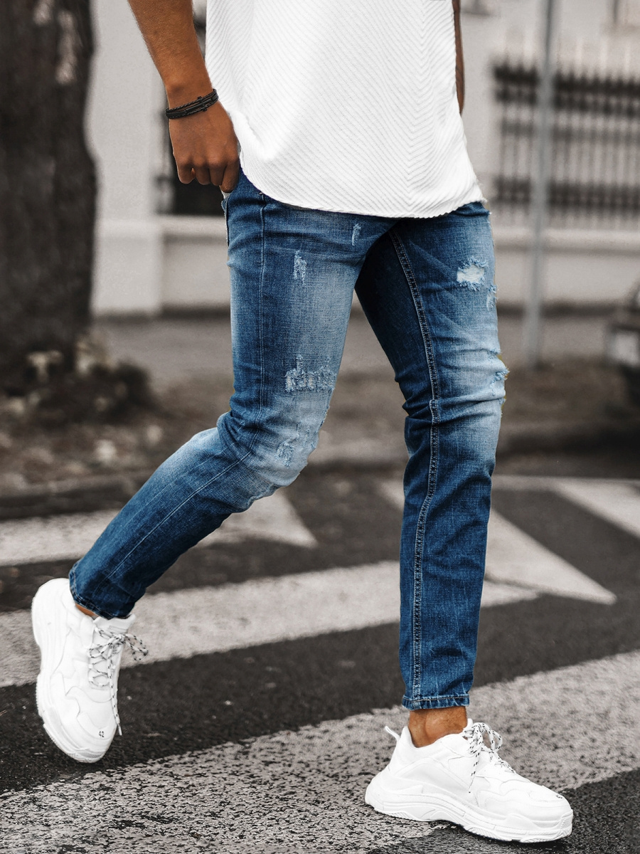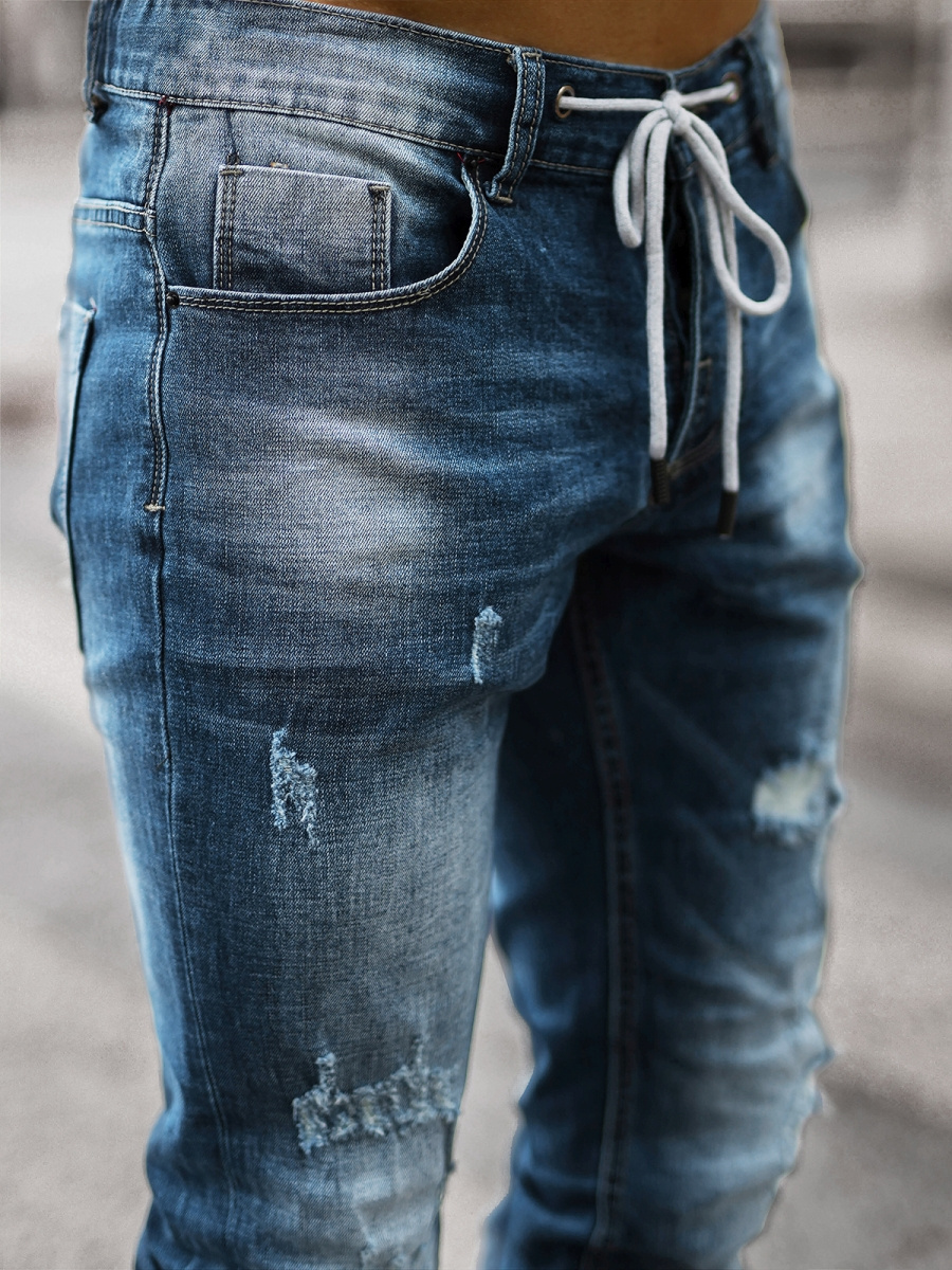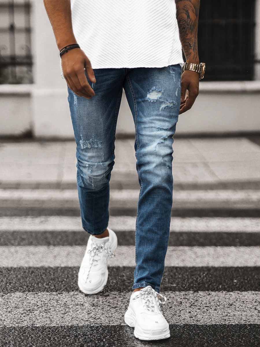 Kalhoty mají slim fit střih, tedy s úzkými nohavicemi. Oděrky, které je zakrývají, jim dodávají originální vzhled. Vpředu a vzadu džínů jsou kapsy, kam schováte drobnosti jako klíče, peněženku nebo telefon. Kalhoty jsou vyrobeny z bavlny, polyesteru a elastanu. Díky tomu krásně padnou na postavu, jsou příjemné na dotek a pohodlné na nošení.