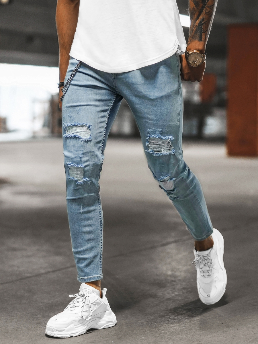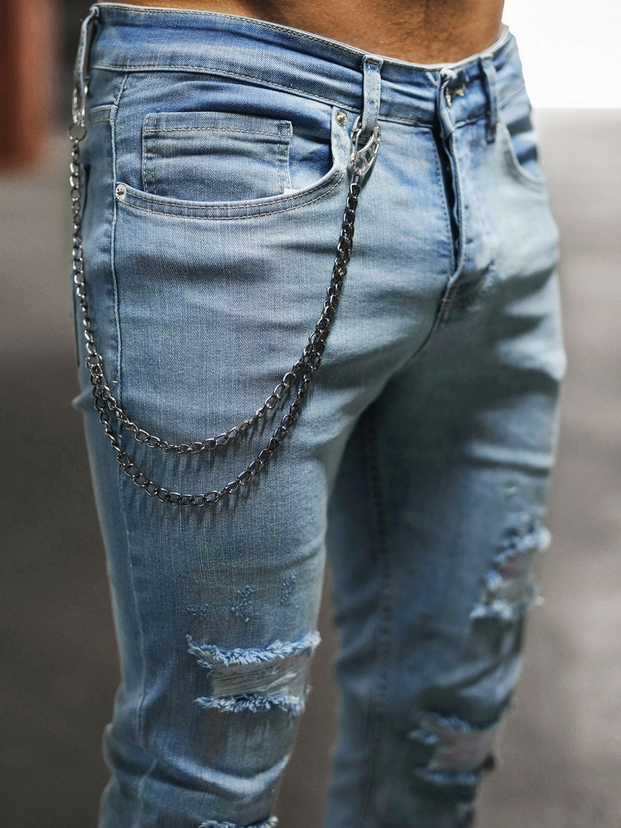 Džíny jsou vyrobeny z bavlny s příměsí elastanu, díky tomu pěkně se přizpůsobí postavě, jsou příjemné na dotek, měkké a pohodlné na nošení. Mají slim fit střih, tzn. s úzkými nohavicemi. Oděrky na nohavicích a odnímatelný ozdobný řetízek jim dodávají originální vzhled. Vpředu a vzadu kalhot jsou kapsy, do kterých se snadno vejdou všechny potřebné drobnosti, jako jsou klíče, telefon nebo peněženka.