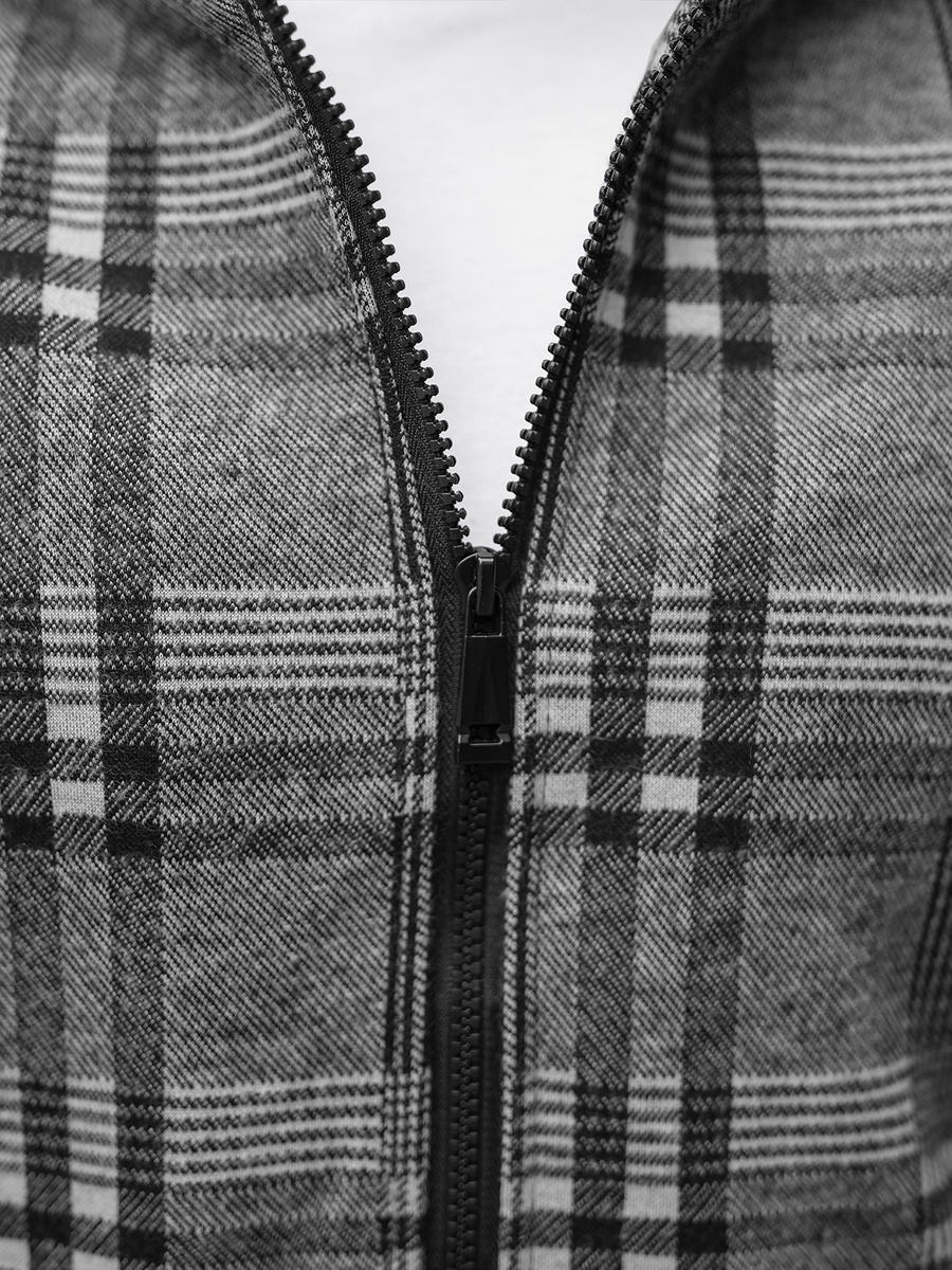 Bunda z nejnovější kolekce. Střih typu bomberka, její charakteristické znaky jsou délka do pasu, stejně jako spodní část a rukávy zakončené manžetami. Bunda má podšitou podšívku, díky čemuž je vhodná do mírně chladnějších dnů. Dále má odepínací kapuci, kapsy na bocích na druky a kapsu uvnitř. Bomber je vyroben z kombinace polyesteru a umělého hedvábí, díky čemuž krásně sedí na těle.
