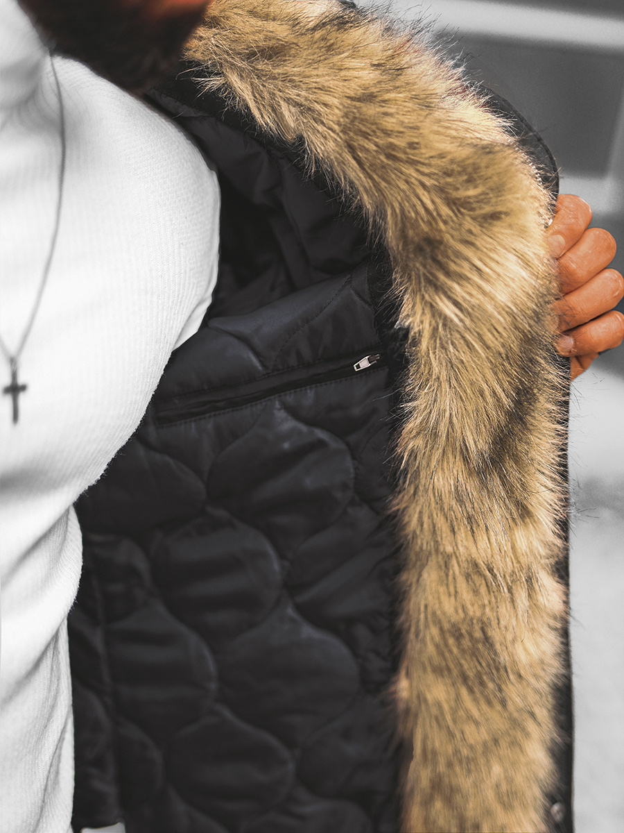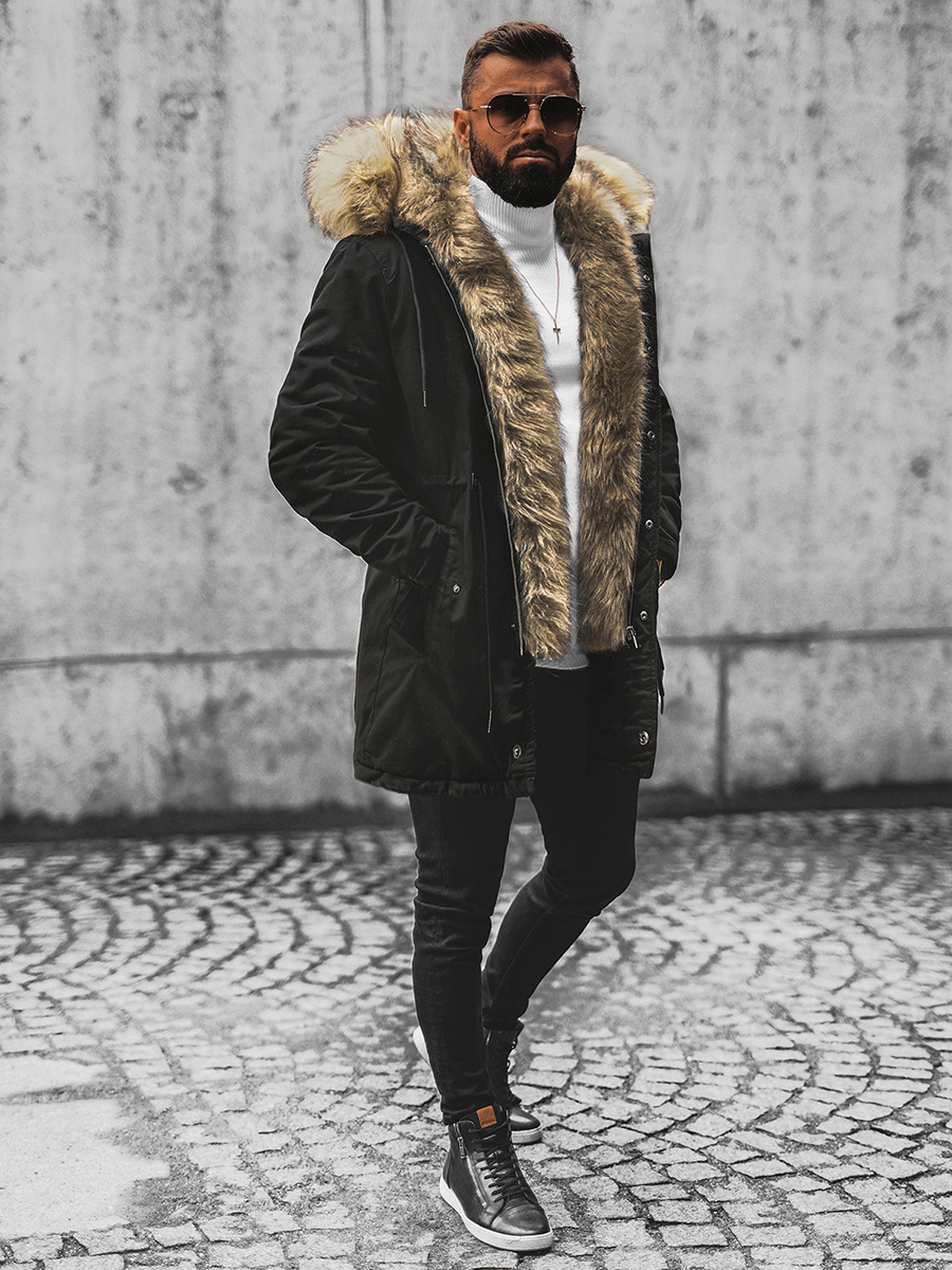 Bunda má střih typu parka. Sahá přes boky a má velké kapsy - dvě po stranách a jednu uprostřed, kam můžete schovat potřebné drobnosti, jako jsou klíče, telefon nebo peněženka. Parka má kapuci, která bude ideální pro chladné, větrné a deštivé dny. Odnímatelná umělá kožešina na kapuci v ve předu u zipu dodává jí původní vzhled. Bunda je vyrobena výhradně z bavlny, díky níž se pohodlně nosí, je vzdušná a příjemná na dotek.