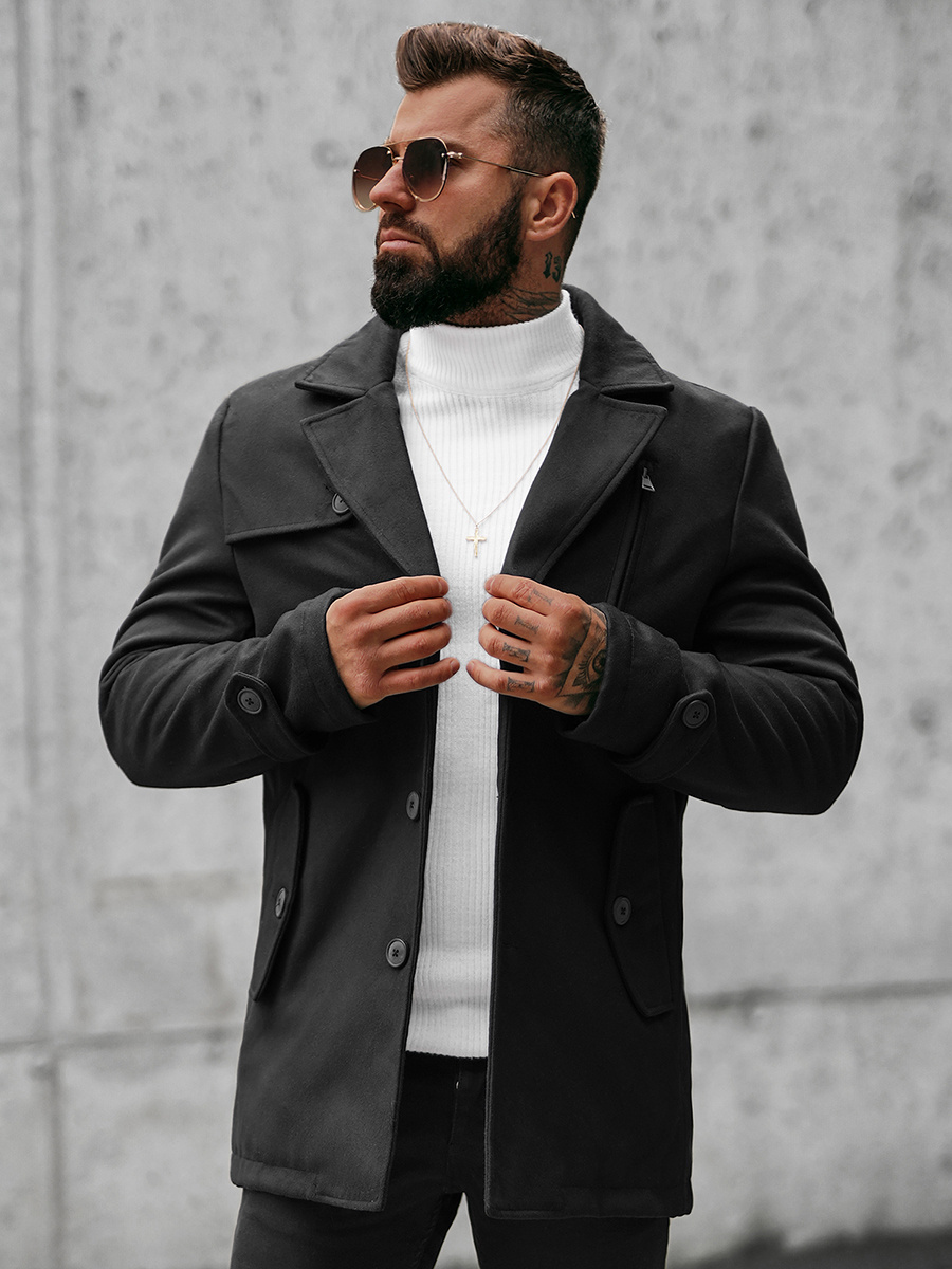 Kabát je vyroben z kvalitního polyesteru, díky kterému krásně přiléhá k postavě. Zapíná se na jednu řadu knoflíků. Kabát má odepínací límec se stojáčkem. Uvnitř izolován, účinně chrání před mrazem v chladných dnech. Kabát má dvě kapsy na bocích , 1 uprostřed a 1 vpředu na zip, kam schováte drobnosti jako klíče, peněženku nebo telefon.
