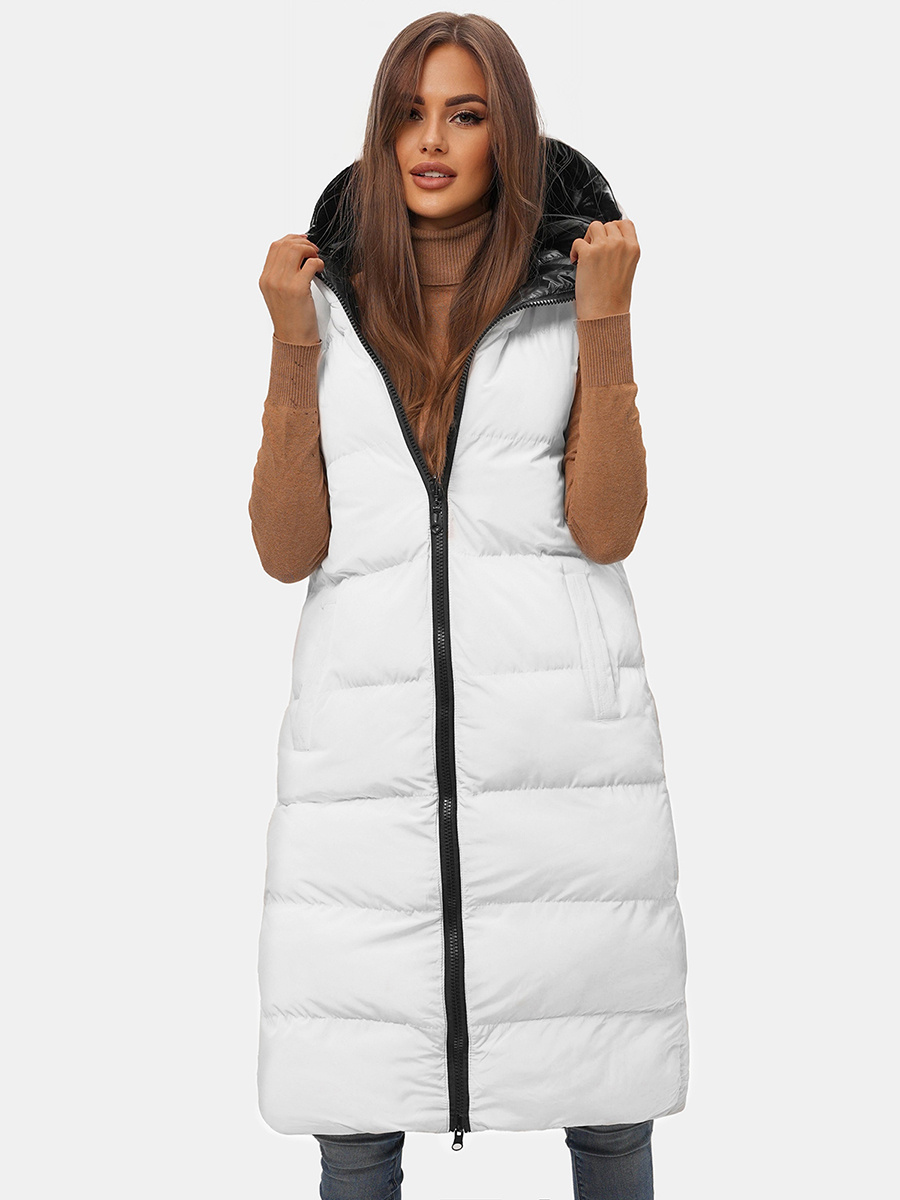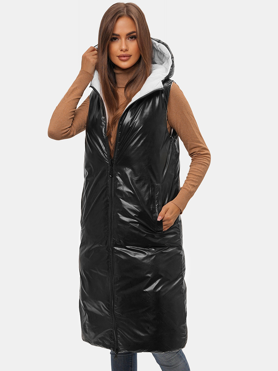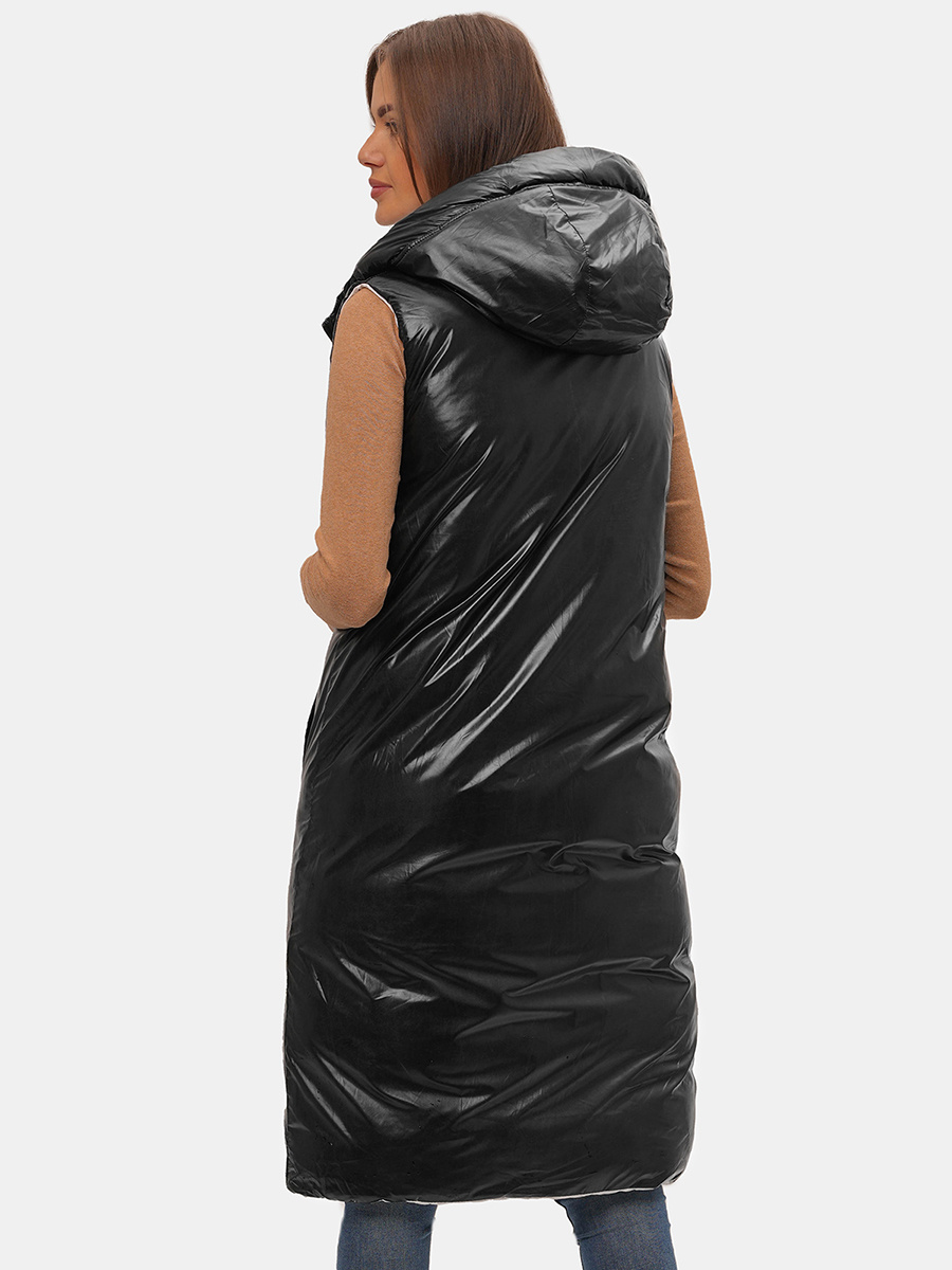 Vesta pochází z nejnovější kolekce. Je oboustranná, a proto - velmi funkční. Vesta má délku ke kolenům. Zapínání na zip. Má praktickou kapuci, která je ideální pro chladné větrné dny. Prošívání, které jej zdobí, mu dodává originální vzhled. Vesta má na bocích na každé straně kapsy, kam schováte potřebné drobnosti, jako je telefon, klíče nebo peněženka. Byl vyroben z kvalitního polyesteru, díky kterému krásně sedí na postavě, nemačká se a rychle schne.