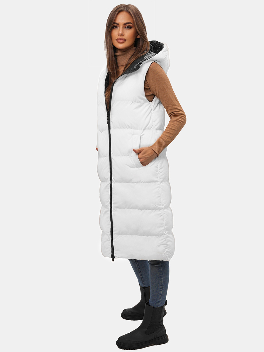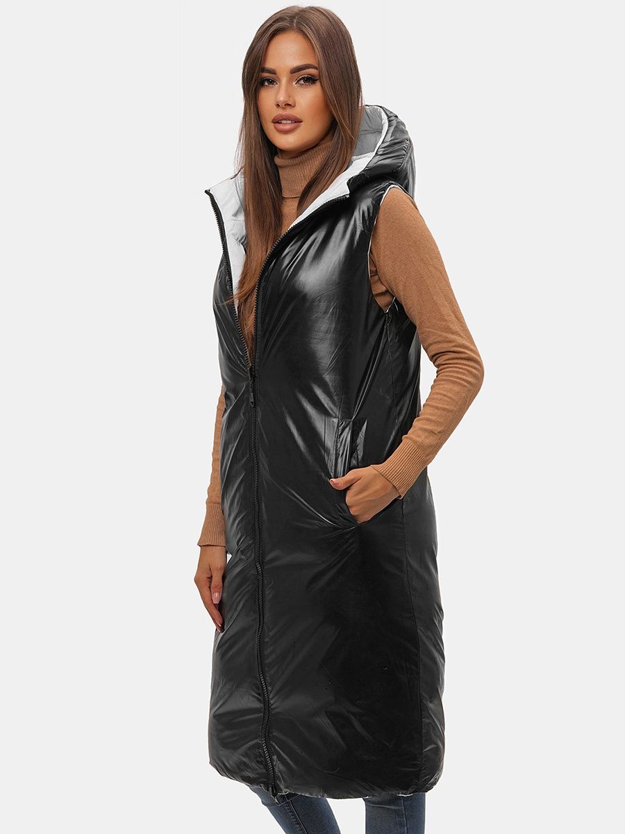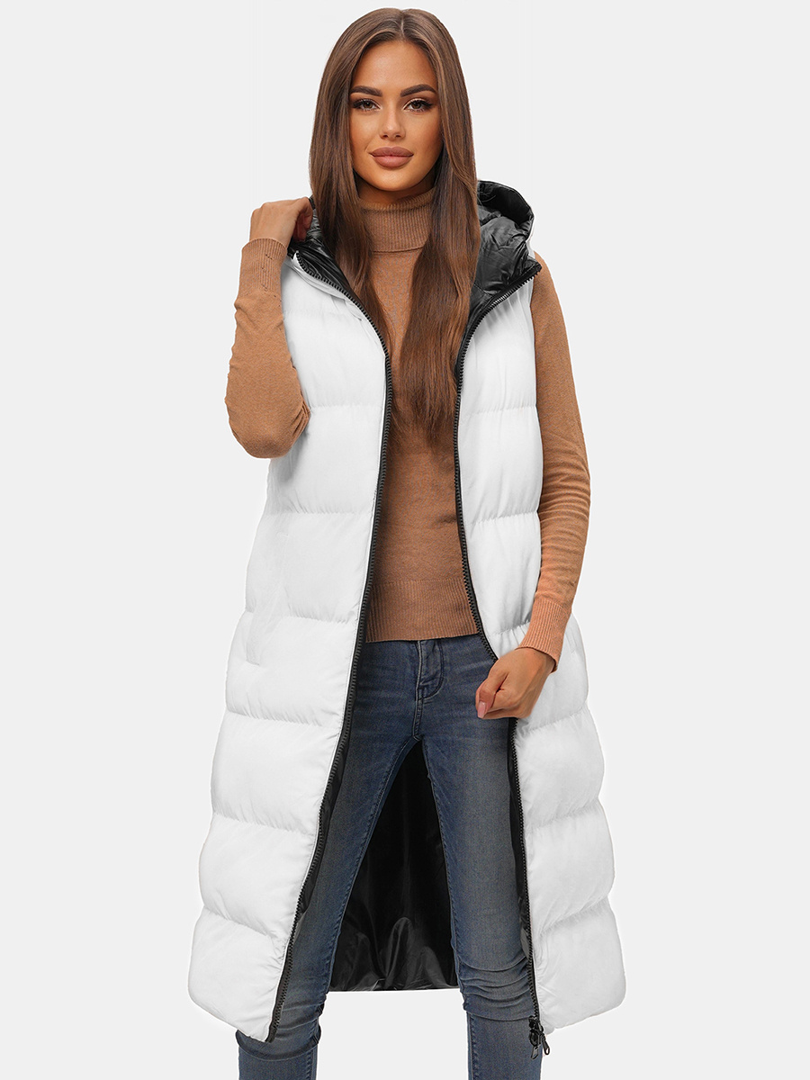 Vesta pochází z nejnovější kolekce. Je oboustranná, a proto - velmi funkční. Vesta má délku ke kolenům. Zapínání na zip. Má praktickou kapuci, která je ideální pro chladné větrné dny. Prošívání, které jej zdobí, mu dodává originální vzhled. Vesta má na bocích na každé straně kapsy, kam schováte potřebné drobnosti, jako je telefon, klíče nebo peněženka. Byl vyroben z kvalitního polyesteru, díky kterému krásně sedí na postavě, nemačká se a rychle schne.