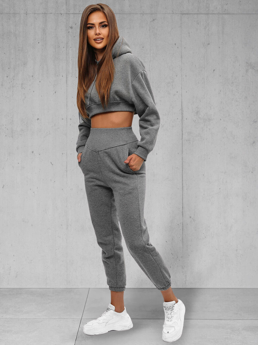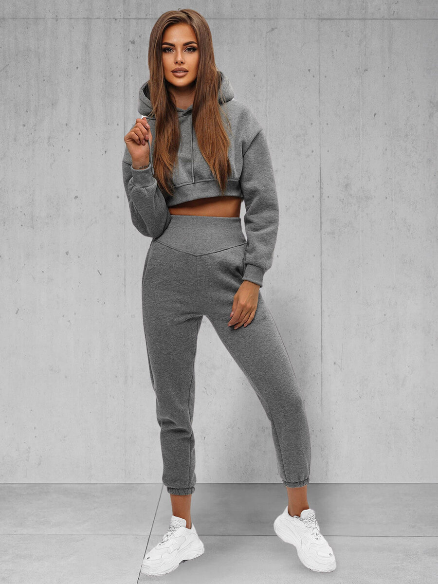 Dámská tepláková souprava se skládá ze dvou prvků. Jsou to stahovací mikina s kapucí zakončená stahováním, které účinně chrání před chladem a studeným větrem, dále kalhoty s vysokým pasem, se stahovací šňůrkou a kapsami na bocích, kam schováte klíče, peněženku nebo telefon. Tepláková souprava byla vyrobena z kombinace bavlny a polyesteru. Díky tomu krásně se přizpůsobí postavě a příjemně se nosí.