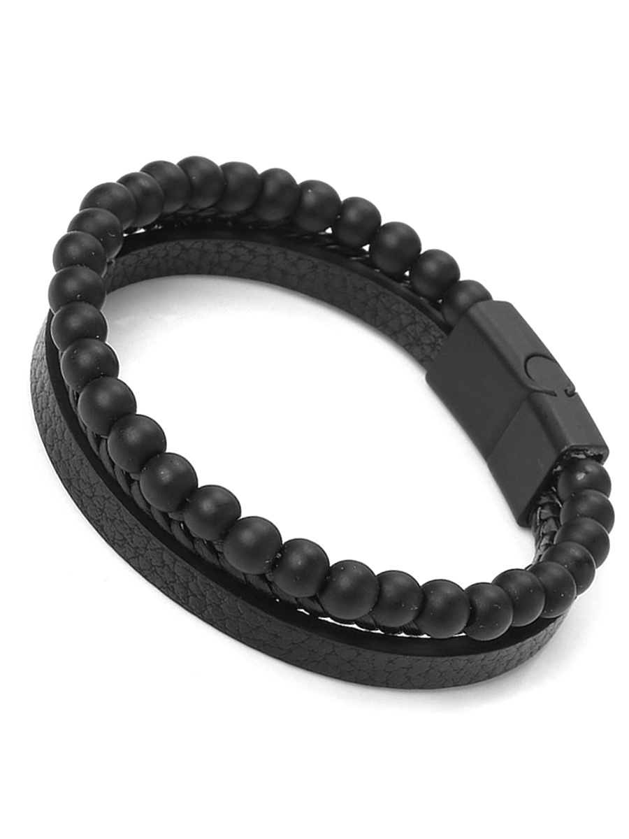 Model je vyroben z náramků z vysoce kvalitní eko-kůže s pleteným vzorem, pásky a korálky. Obvod je nastavitelný řetězci v rozsahu 16 až 22 centimetrů.