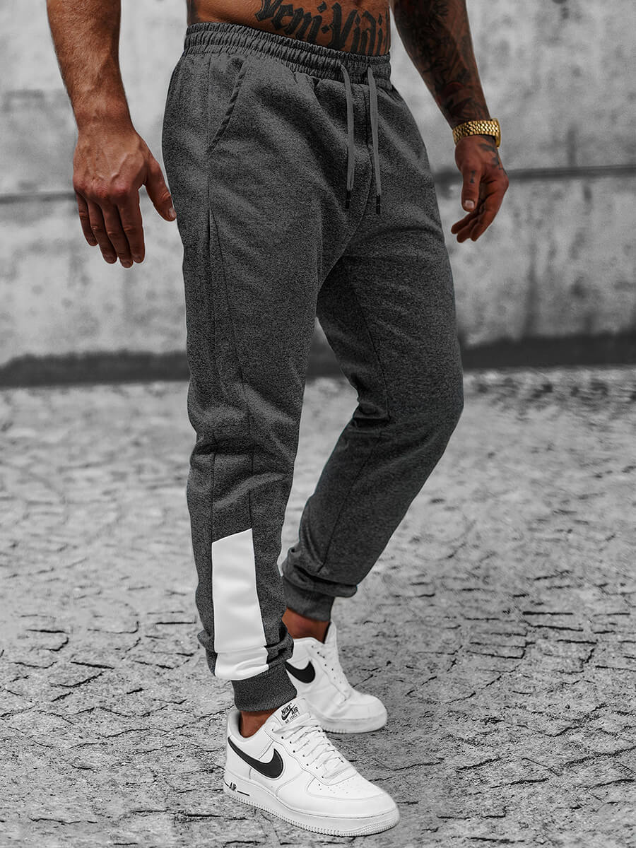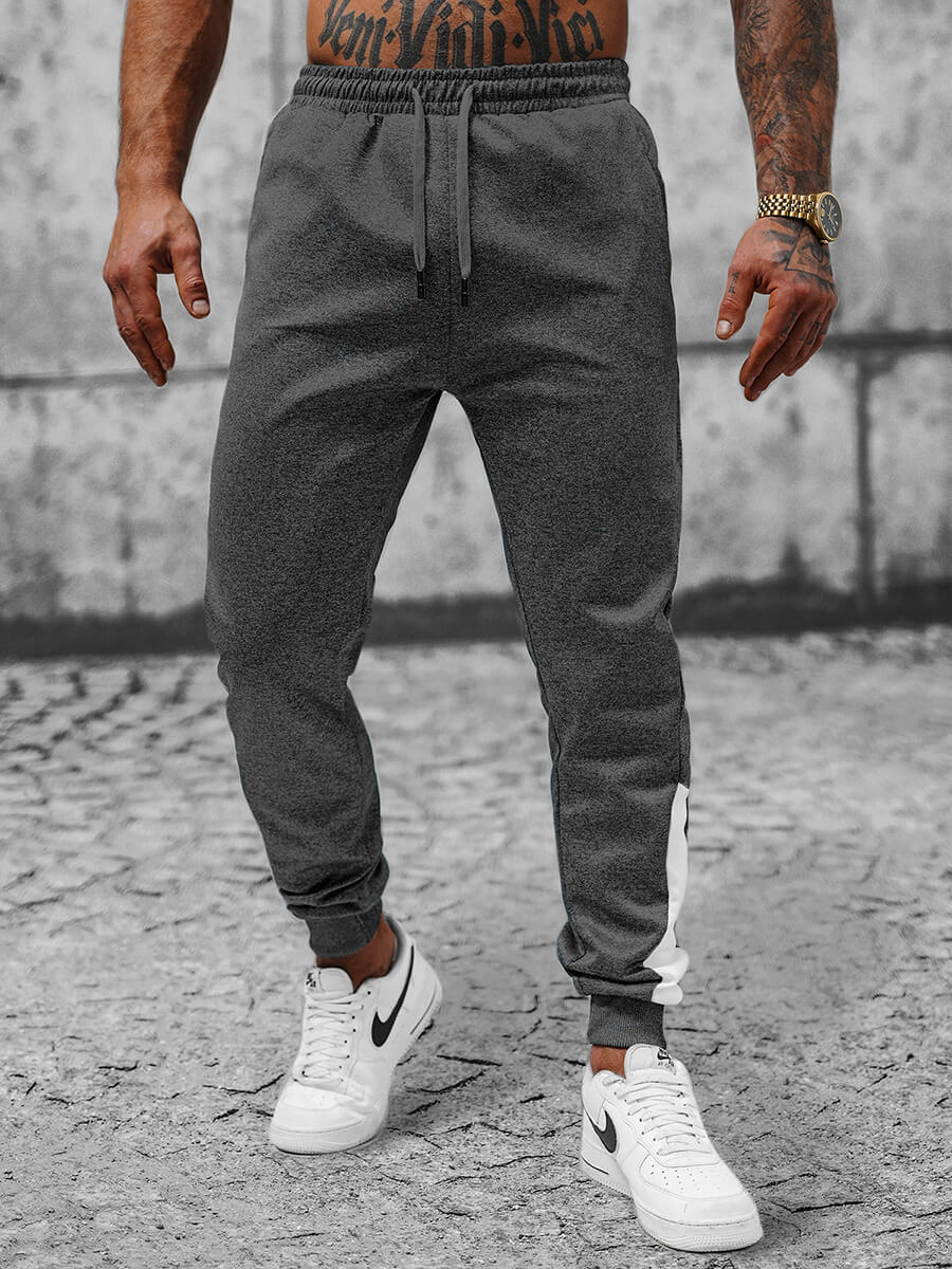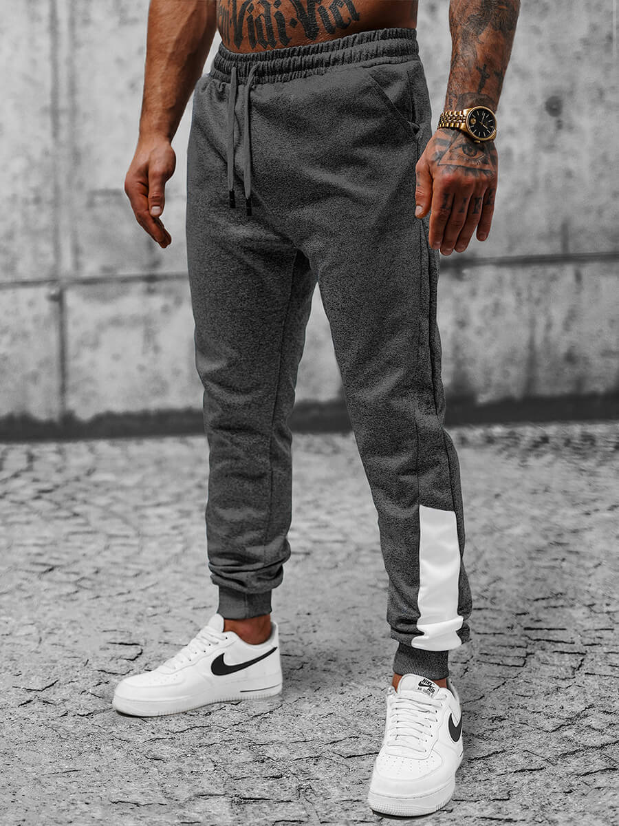 Kalhoty z nejnovější kolekce. Kontrastní vsadky, které je zdobí, jim dodávají originální vzhled. Pas a nohy teplákových souprav jsou zakončeny lemy pro pohodlí. Na bocích kalhot jsou praktické kapsy, kam schováte různé drobnosti, jako jsou klíče, telefon nebo peněženka. Tepláky jsou vyrobeny z kvalitního polyesteru, díky čemuž pěkně padnou na postavu, nemačkají se a rychle schnou.