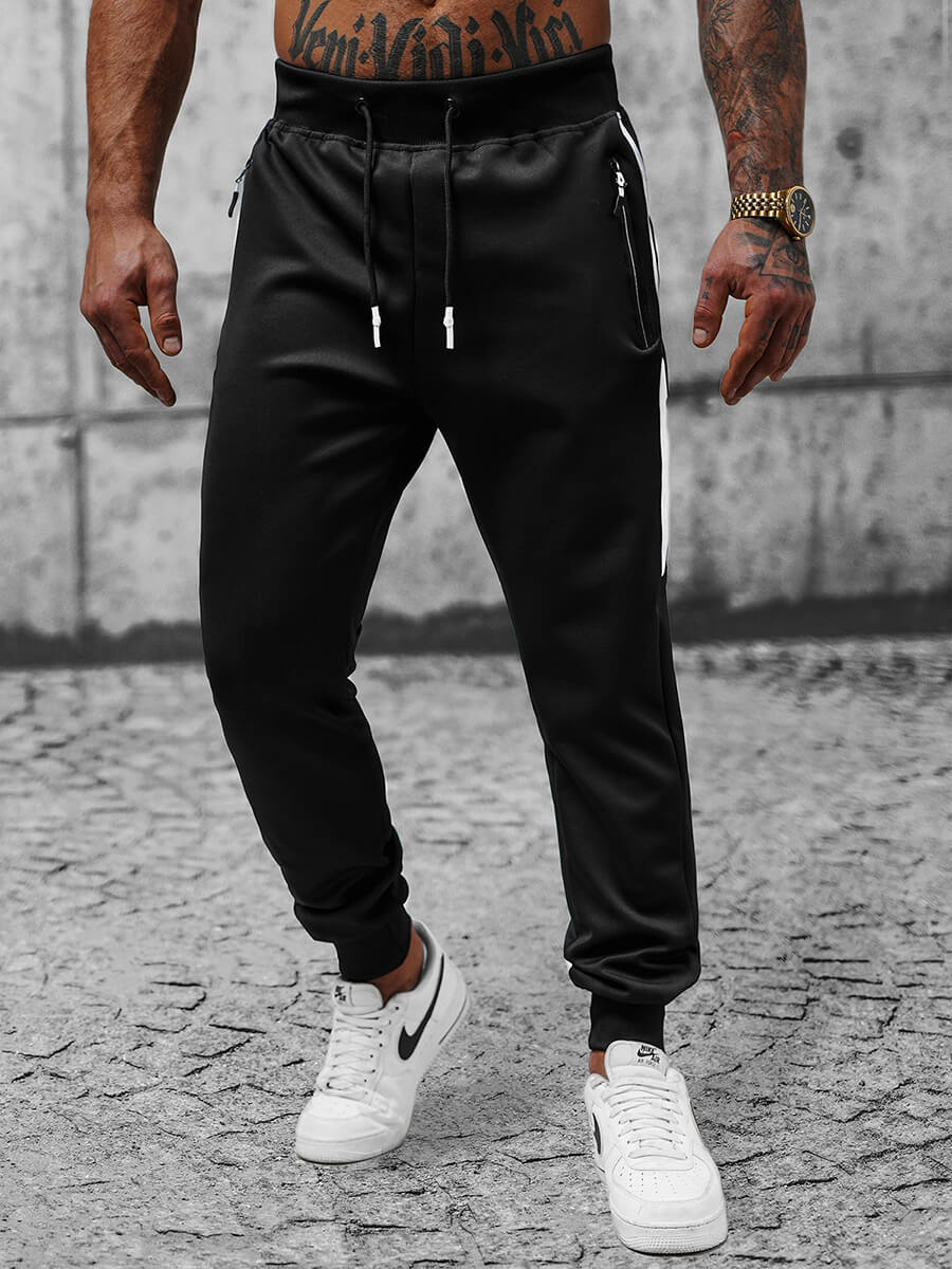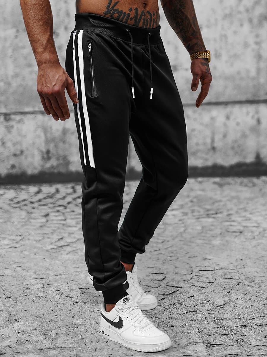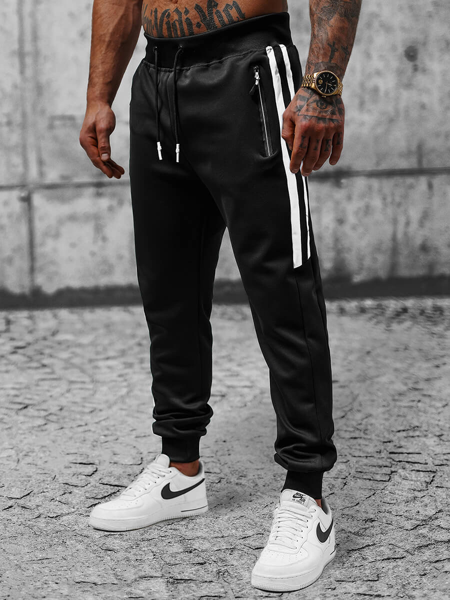 Kalhoty pocházejí z nejnovější kolekce. Jejich pas a nohavice jsou zakončeny lemy, které zaručují vysoký komfort nošení. Po stranách jsou kapsy na zip, kam schováte drobnosti jako klíče, telefon nebo peněženku. Kontrastní vsadky dodávají kalhotám originální vzhled. Tepláky jsou vyrobeny z kvalitního polyesteru, díky čemuž pěkně padnou na postavu, nekrčí se a rychle schnou.