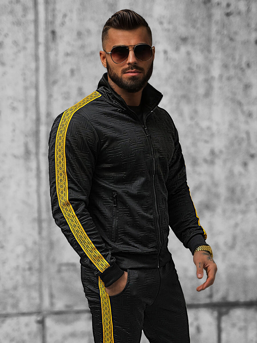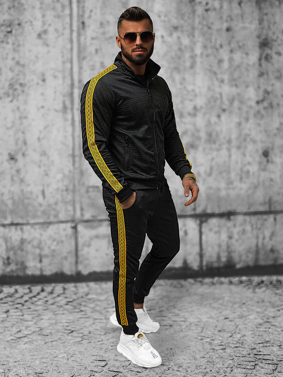 Sada z nejnovější kolekce. Skládá se ze dvou prvků. Jsou to mikina na zip s lemy a kontrastními lemy a kalhoty s lemy a kontrastními lemy. Vyrobena z kvalitního polyesteru s příměsí elastanu, díky čemuž krásně sedí na postavě, nemačká se, rychle schne a je odolné proti obarvení.