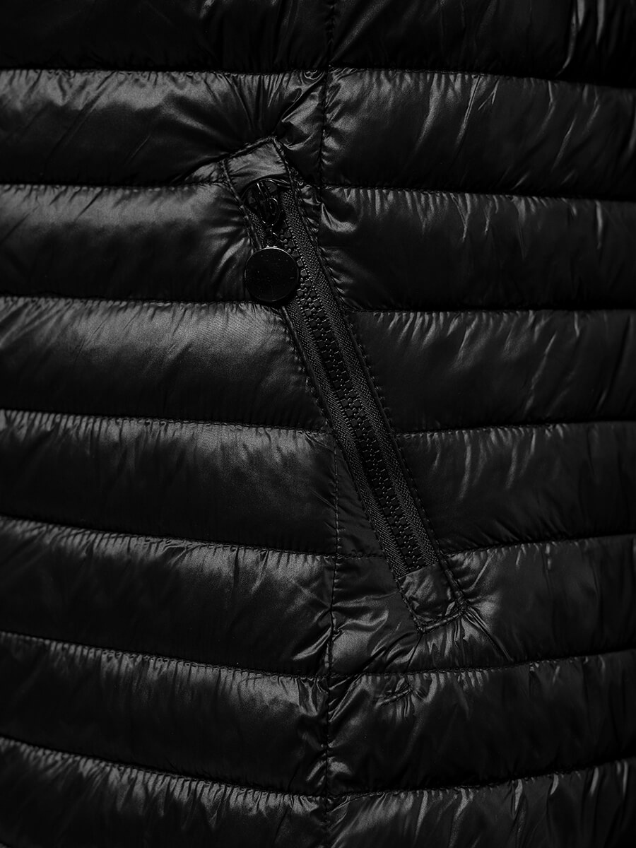 Vesta pochází z nové kolekce. Zapíná se na zip a sahá přes boky. Má praktickou kapuci, která účinně chrání před větrem, deštěm a chladem. Po stranách jsou kapsy na zip, kam si můžete uložit telefon, klíče, peněženku nebo jiné drobnosti. Prošívání zdobení vesty jí dodává originální vzhled. Vyrobena z nylonu a jeho podšívka je polyester. Díky tomu vesta krásně sedí na postavě a rychle schne.