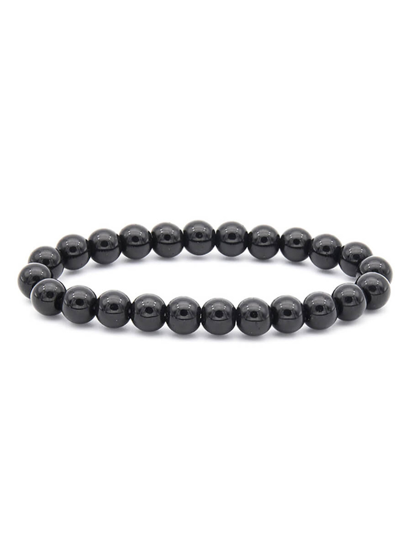 Náramek z nejnovější kolekce našeho internetového obchodu. Skládá se z kulatých černých korálků vyrobených z vysoce kvalitního plastu a umístěných na pružném, odolném vlasci odolném proti roztržení, který sedí na zápěstí.