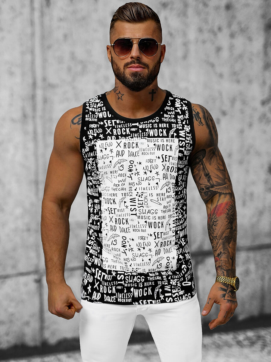 Tričko má střih tílka, tj. bez rukávů. Pochází z nejnovější kolekce našeho internetového obchodu. Celou přední stranu trička zdobí originální potisk zobrazující velké množství drobných nápisů. Tílko je vyrobeno z kombinace bavlny a polyesteru. Díky tomuto složení je velmi pohodlné na nošení, příjemné na dotek, hezky sedí na těle, nemačká se a lze ho prát v pračce.