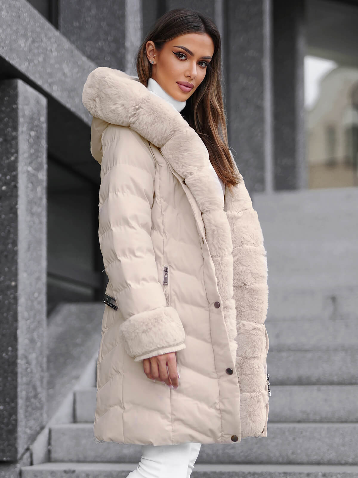 Dámská zimní dlouhá bunda s kožešinou ecru OZONEE JS/5M3156/254