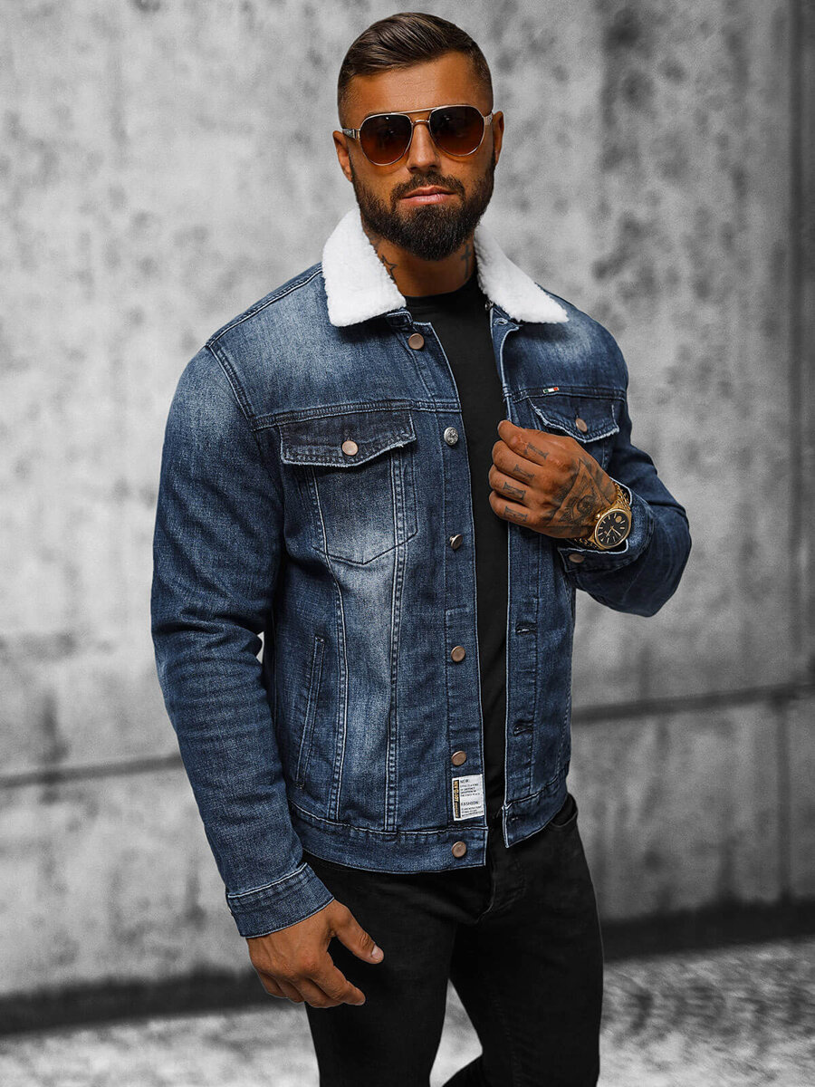 Pánská Džínová Bunda Šerpa Tmavě Modrá OZONEE NB/MJ516BSZ