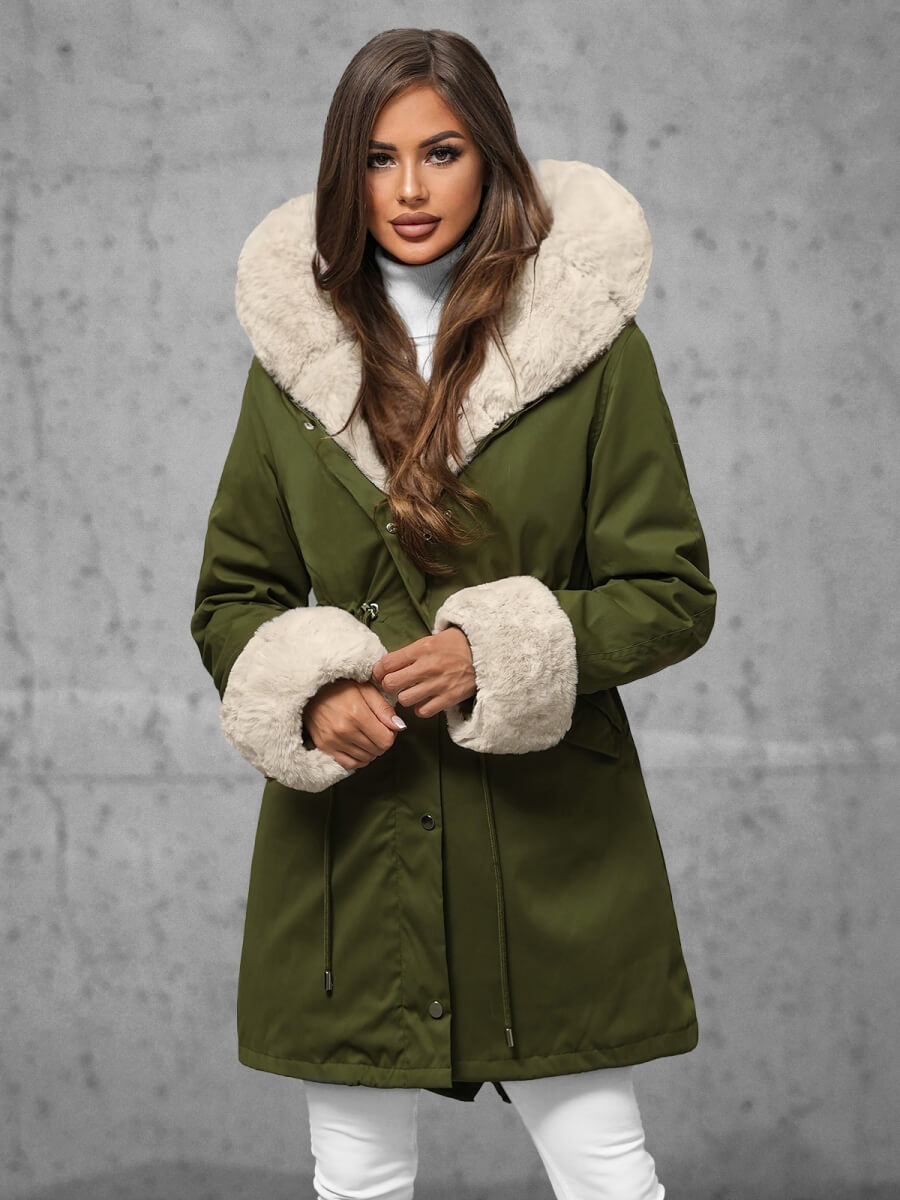 Dámská zimní dlouhá bunda s kožešinou zelená OZONEE JS/5M3187/136