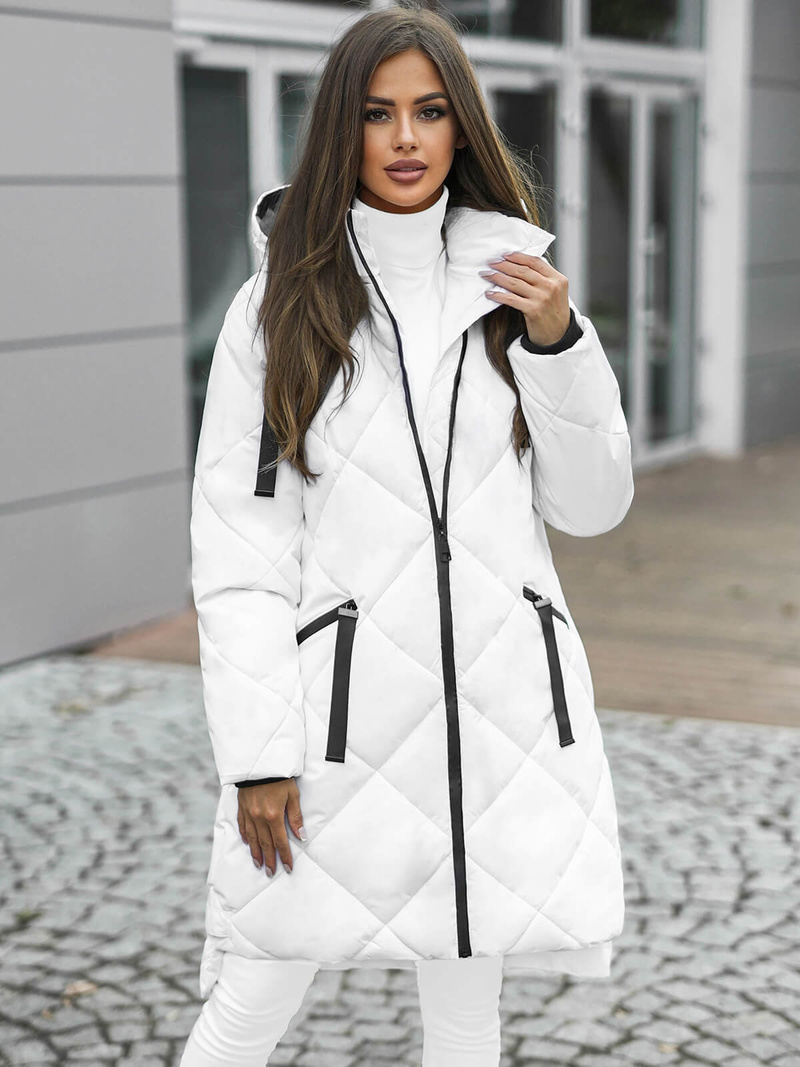 Dámská zimní bunda dlouhá prošívaná bílá OZONEE JS/5M3168/281