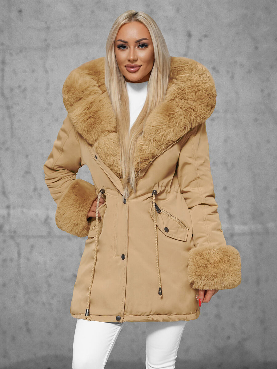 Bunda pochází z nové kolekce. Zapínánáni na zip. Pas, který krásně zvýrazňuje ženskou postavu. Bunda má na bocích kapsy, kam schováte potřebné drobnosti, jako jsou klíče, peněženka nebo telefon. Odepínatelný kožíšek u kapuce, zipu a rukávů, což jí dodává stylový charakter. Bunda je vyrobena z kvalitního polyesteru, díky kterému je odolná proti poškození a krásně sedí na těle.