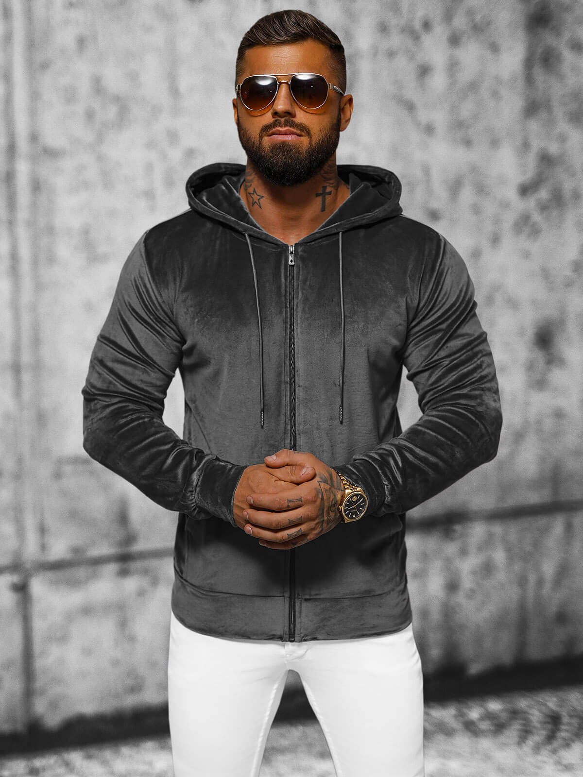 Pánská grafitová velurová mikina OZONEE JS/8B1168/6 - styl a pohodlí v jednom