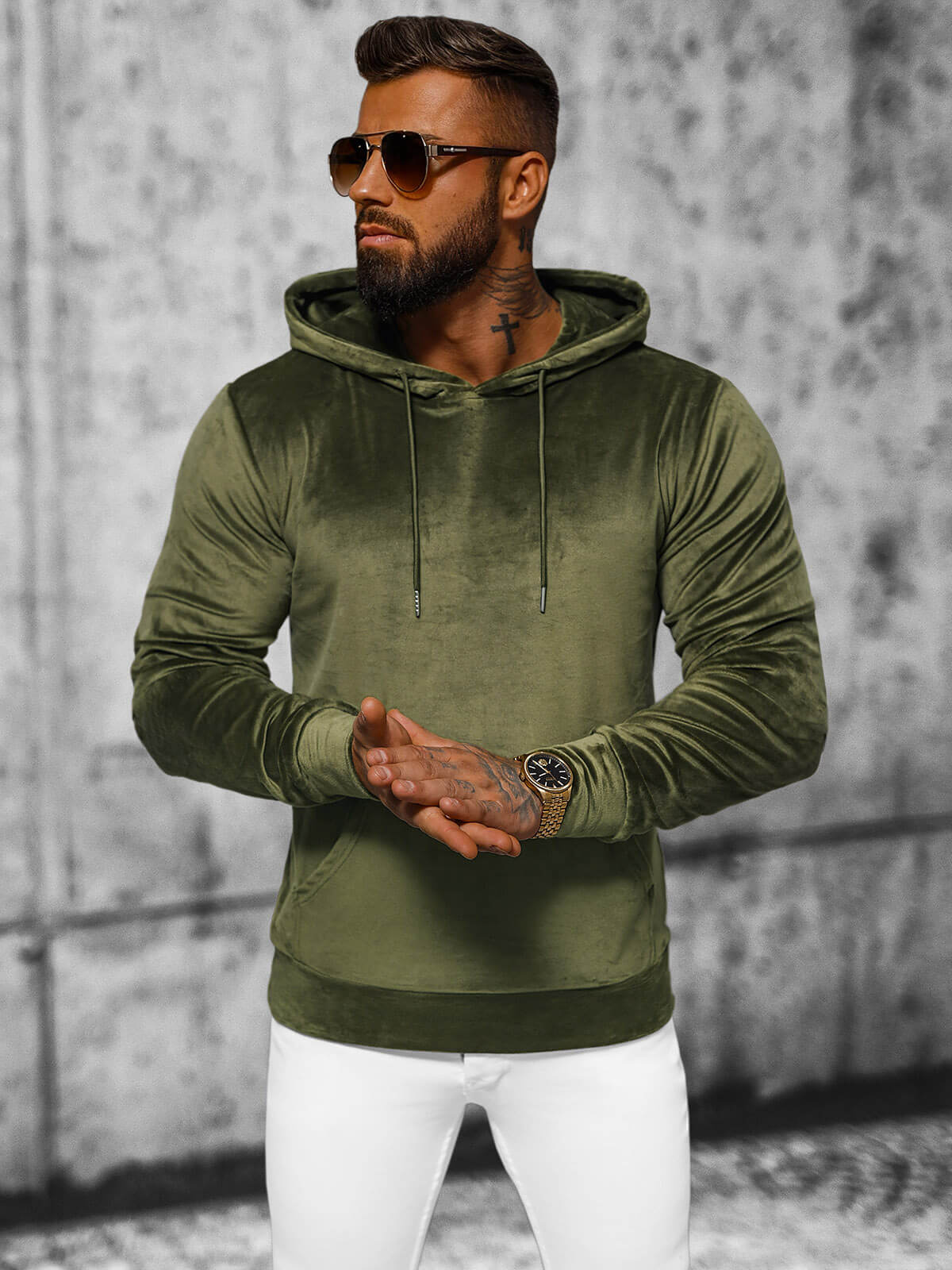 Pánská khaki velurová mikina OZONEE JS/8B1170/29 - styl a pohodlí v jednom
