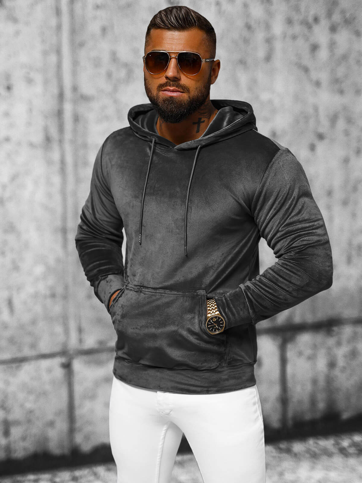 Pánská grafitová velurová mikina s kapucí OZONEE JS/8B1170/6 - ideální pro každou příležitost