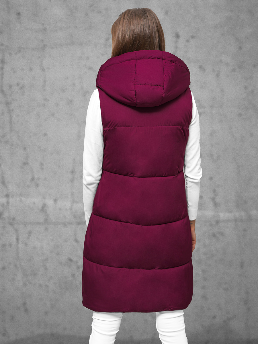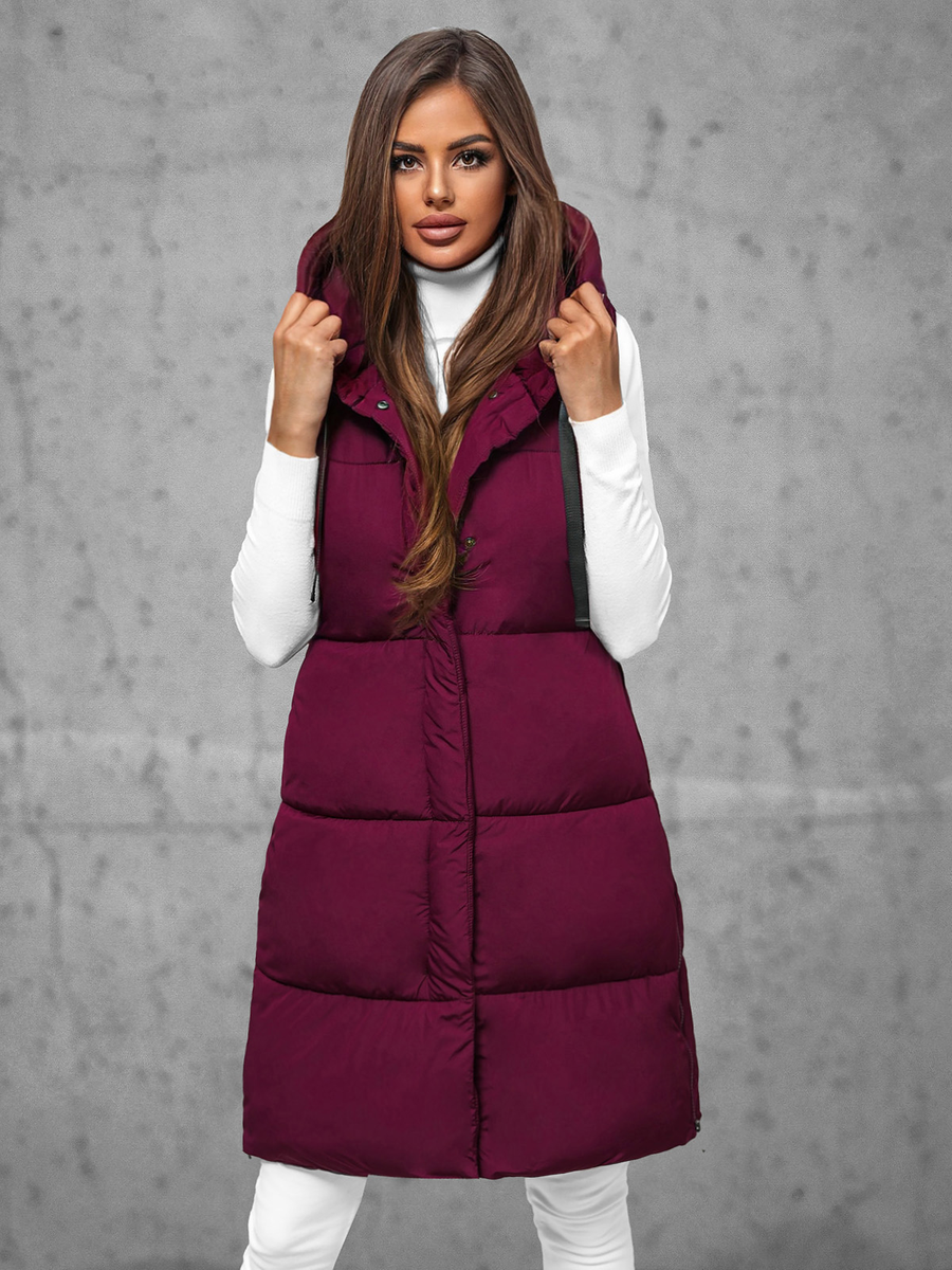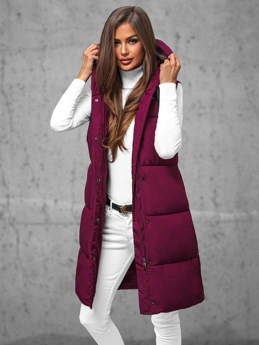 Dámská dlouhá prošívaná vesta s kapucí vínová OZONEE JS/16M9093/06