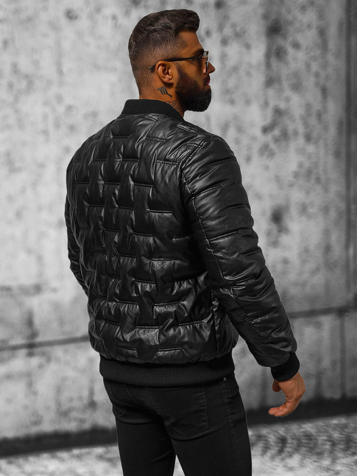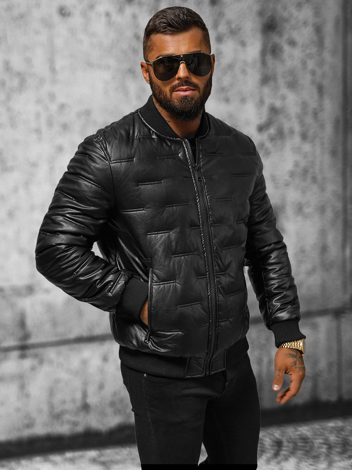 Pánská kožená bunda bomber černá OZONEE O/11Z8099 - elegance se snoubí s praktičností