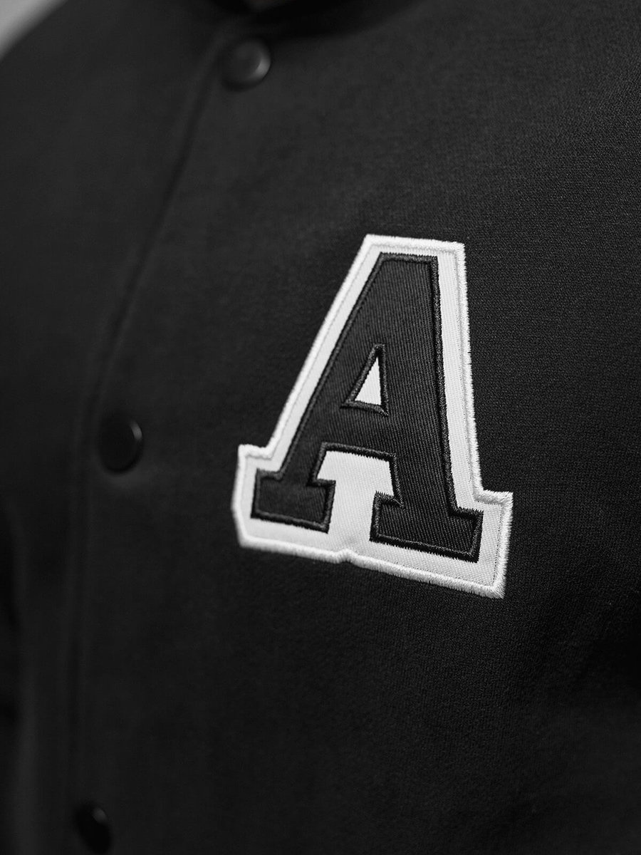 Hlavní vlastnosti produktu: Má naszywkę z písmenem A, Dolní okraj a rukávy dokončené gumou, Kapsy po stranách.