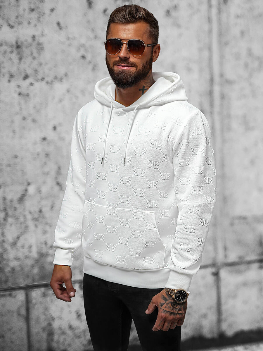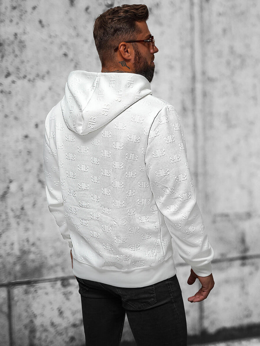 OZONEE pánská bílá mikina s kapucí JS/3B566