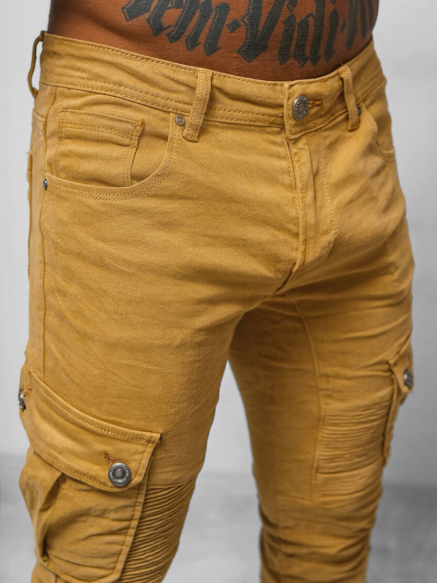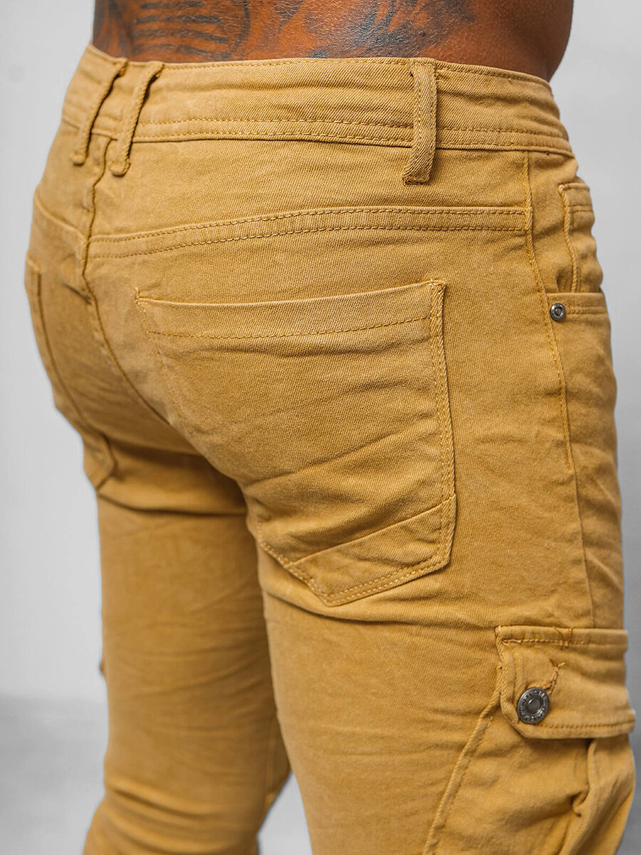 Pánské tmavě béžové kalhoty chino jogger OZONEE O/E6979H - elegance se snoubí s pohodlím