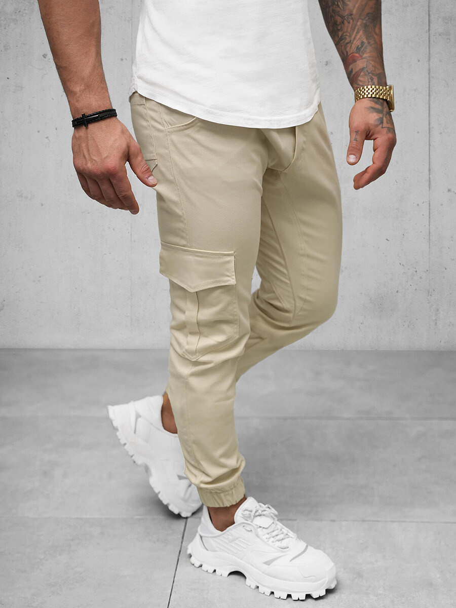 Pánské chino tepláky béžové OZONEE A/404 - pohodlí splňuje styl