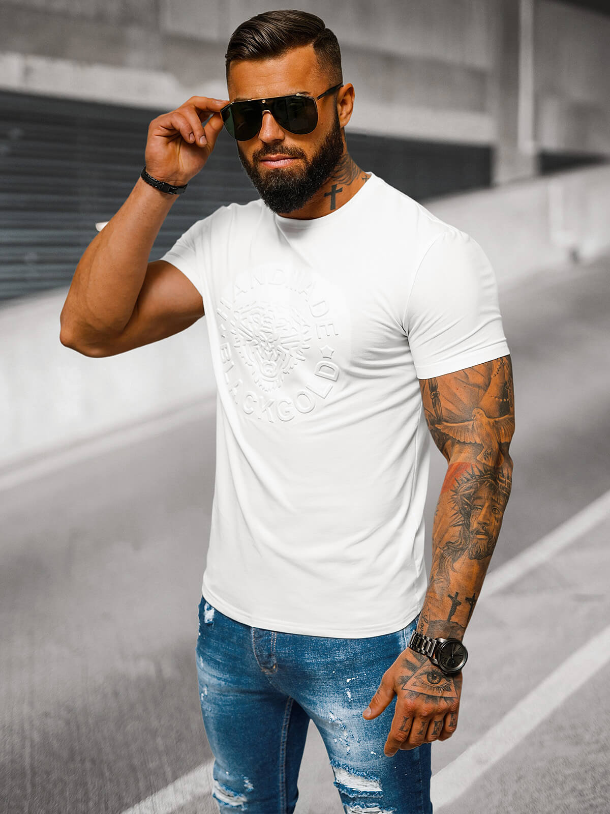 Pánské Tričko Bílé OZONEE NB/MT3056Z