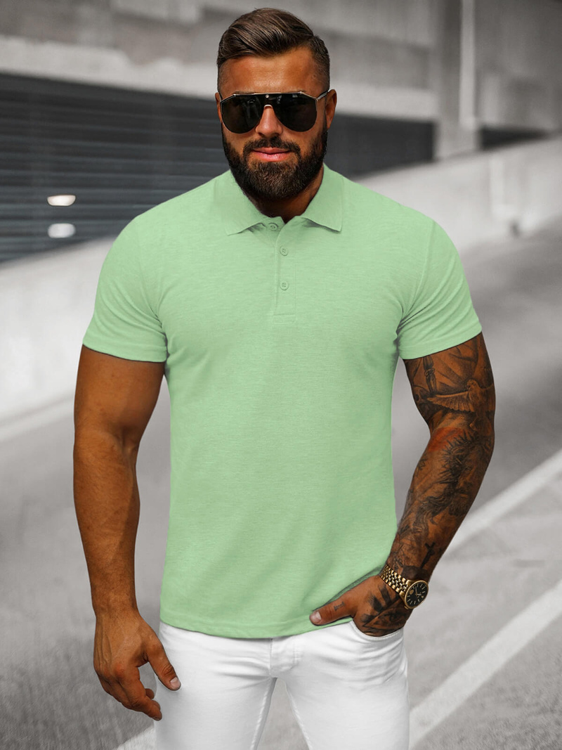 Pánské tričko, styl polo, límeček Kent, zapínání na tři knoflíky, barva: mátová