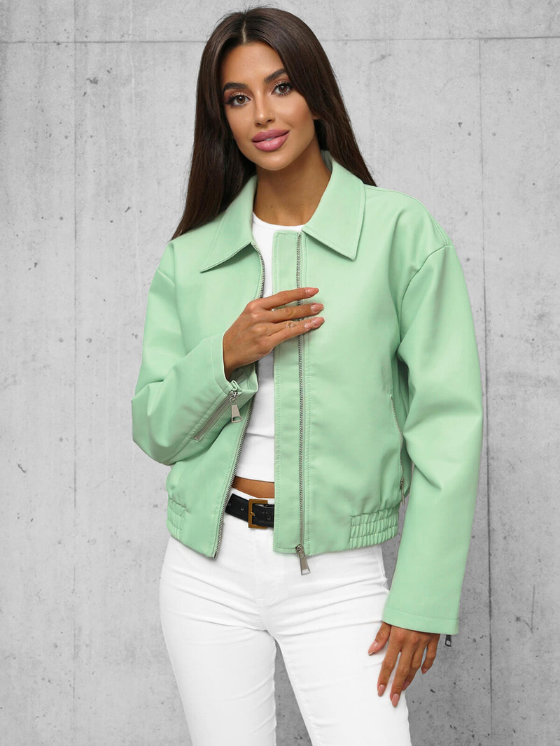 Dámská Kožená Bunda Mentolová OZONEE O/G116Z