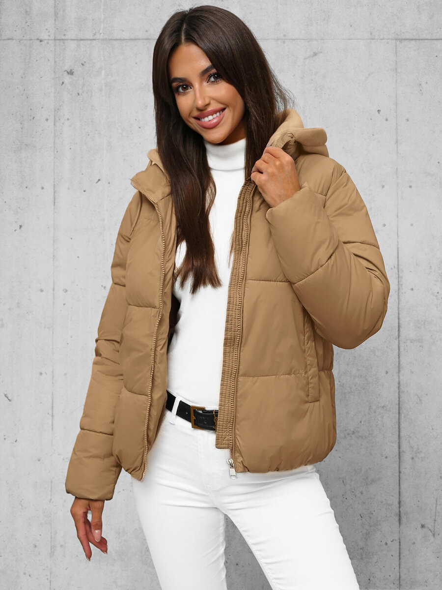 Výjimečný styl a pohodlí v jednom - OZONEE dámská prošívaná světle béžová zimní bunda JS/16M9187/158