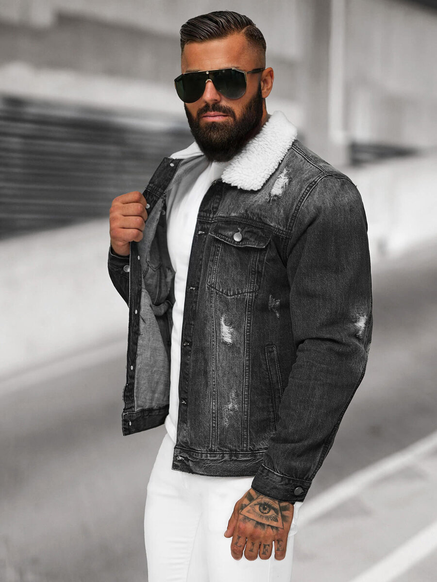 Pánská sherpa džínová bunda OZONEE NB/MJ502BZ je mimořádně stylový a pohodlný model, který je ideální pro každodenní nošení. Je vyrobena z vysoce kvalitních materiálů a poskytuje nejen módní vzhled, ale také pohodlné nošení. Bunda má límec s ovčí kůží, který jí dodává charakter, a také kapsy na bocích a na přední straně, které jsou praktické a funkční. Módní potěr jí dodává jedinečný vzhled. Materiál tvoří z 95 % bavlna a z 5 % viskóza, což zaručuje odolnost a pohodlné nošení